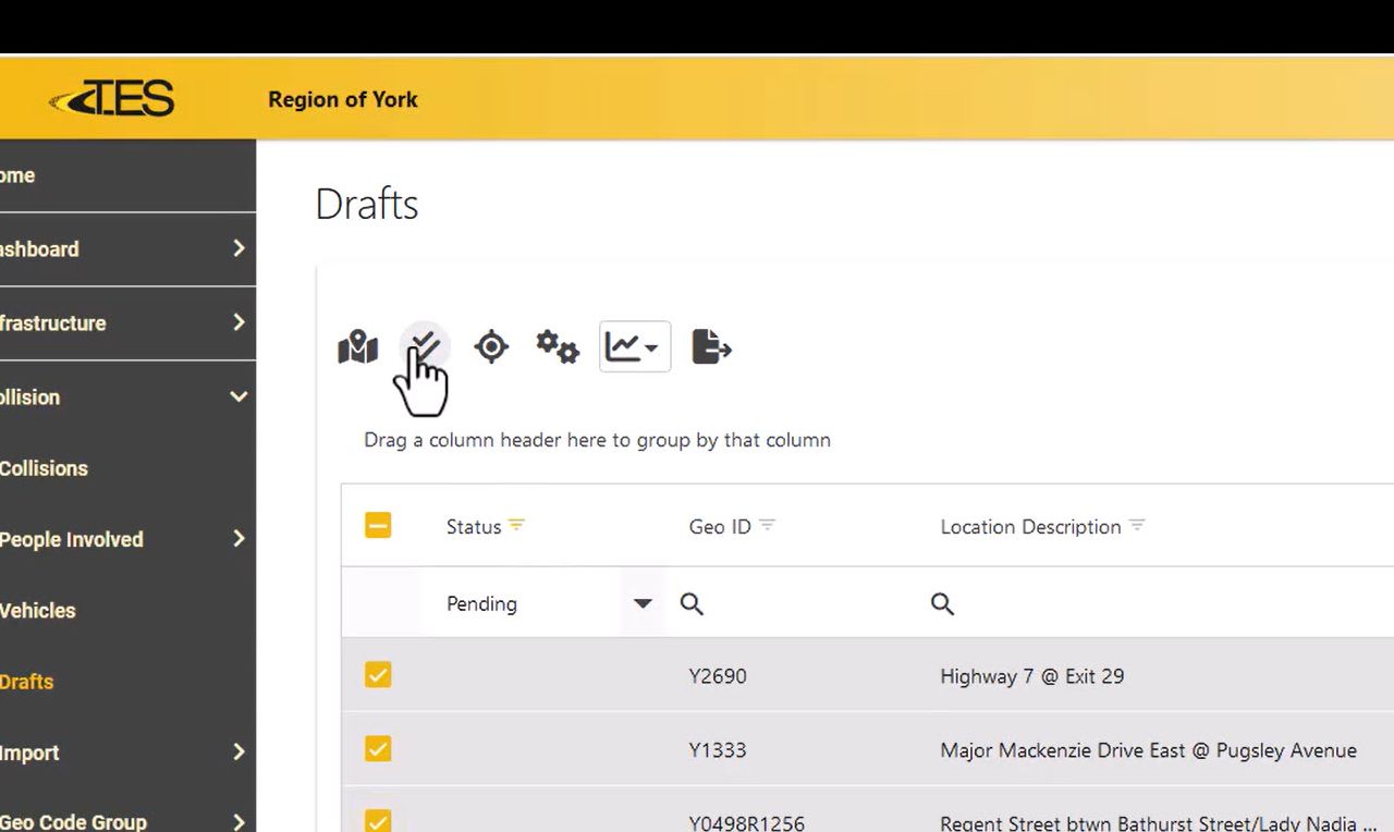 The Drafts module is used in your jurisdiction for geocoding and validating newly geocoded collisions.