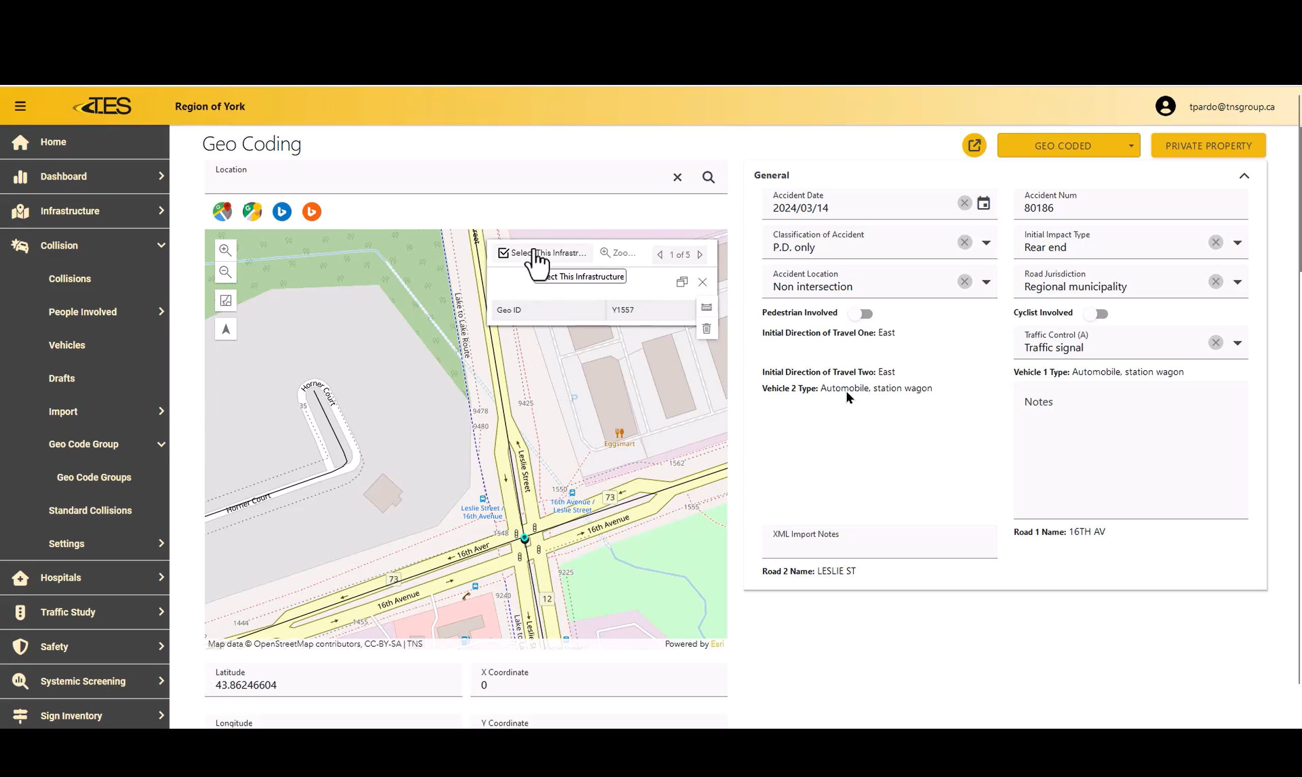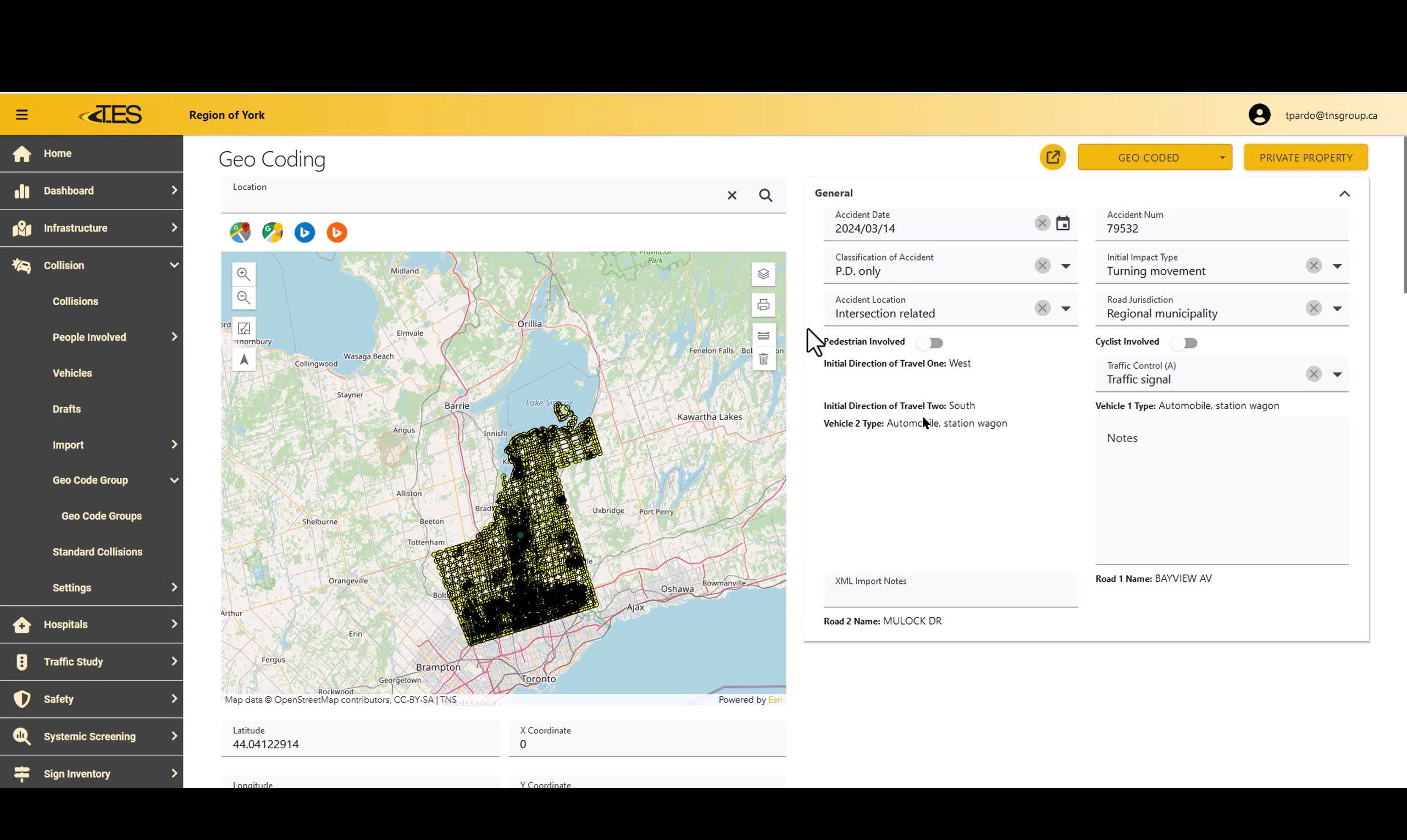 Once you choose any of these options, the system will automatically move to the next collision in the group for geocoding.