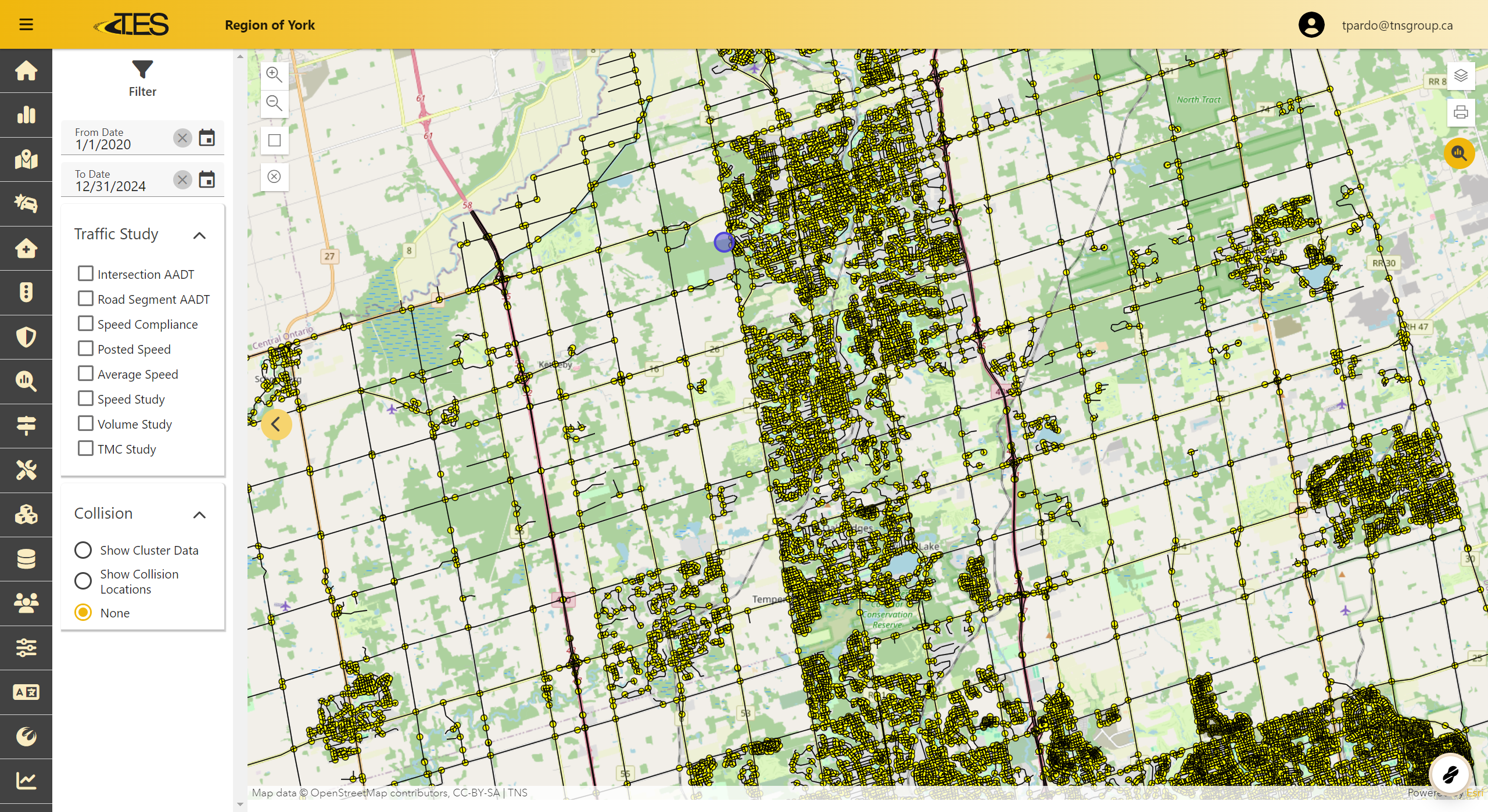 The location will be highlighted, and its traffic and collision data will be displayed.
