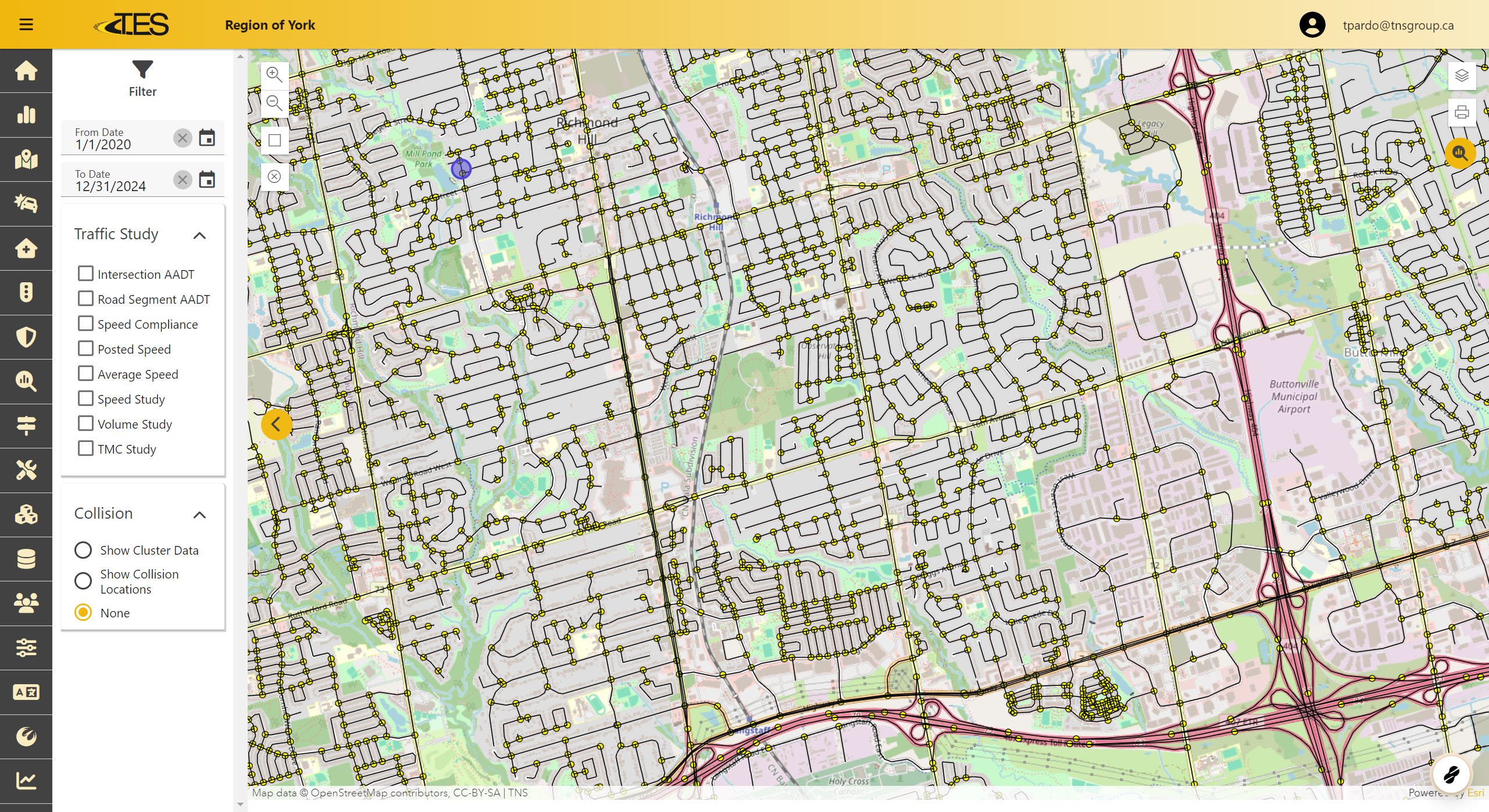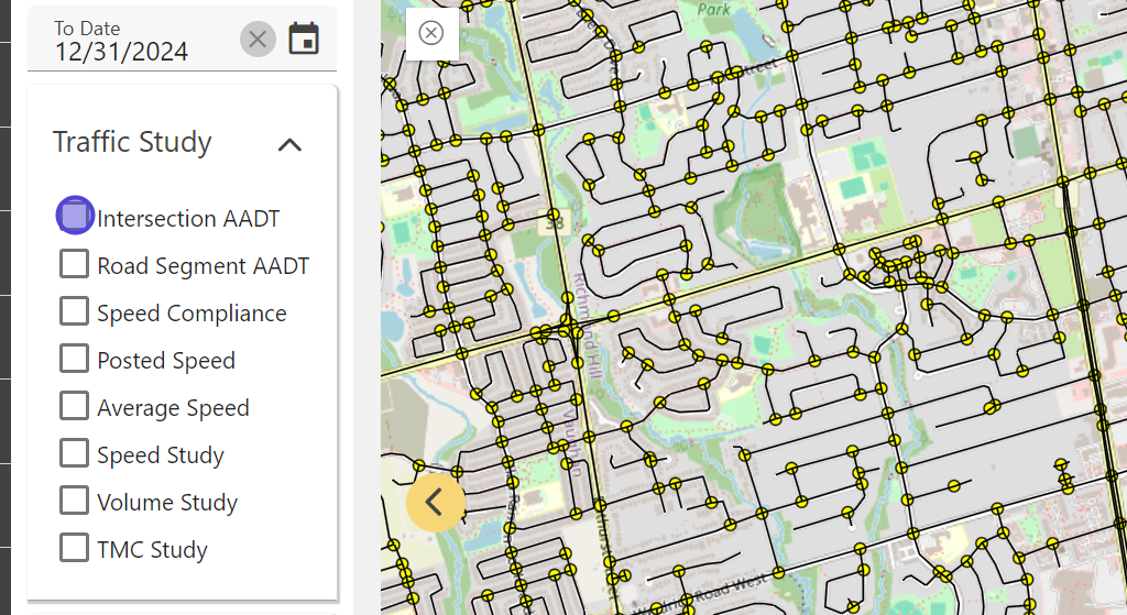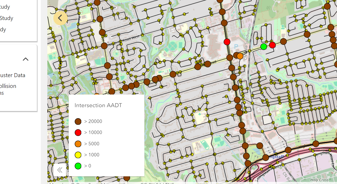 The legend explains the colors and symbols representing the data (e.g., traffic volume ranges for AADT).