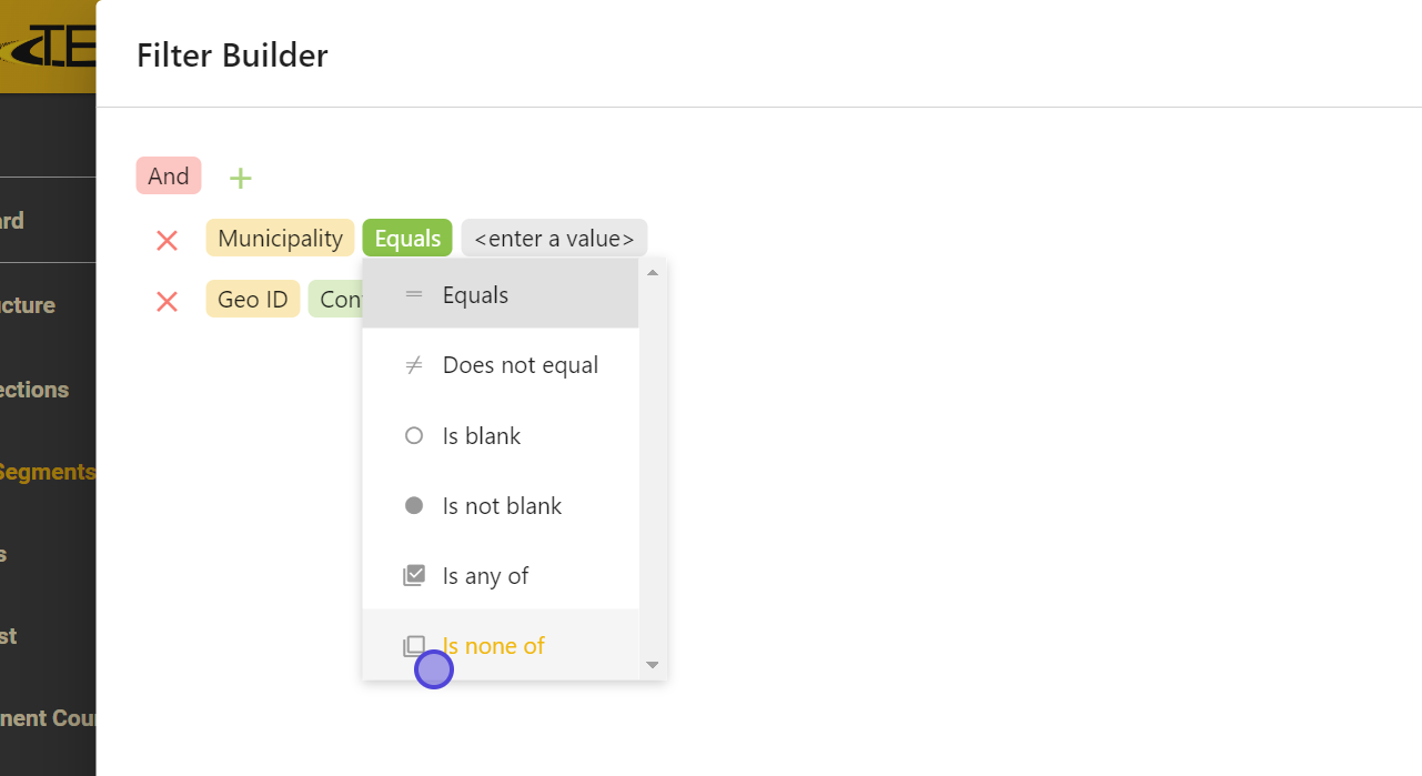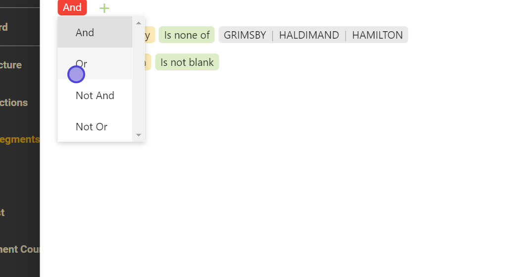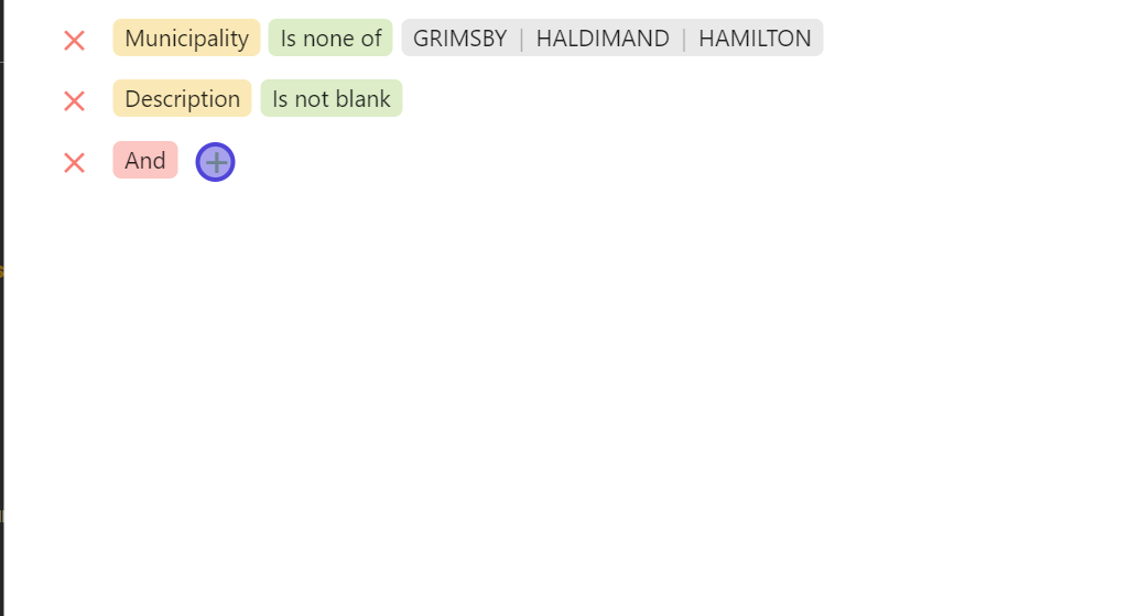 Condition Type (Green) : Specify how you want to filter (e.g., equals, contains, is blank).