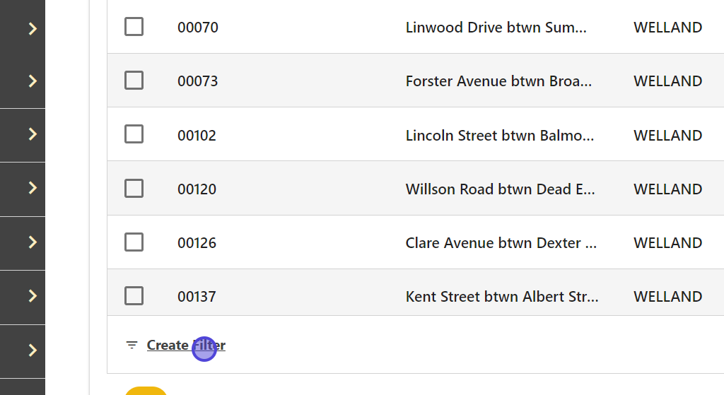 At the bottom-left of the data grid, find and click the "Create Filter" button.