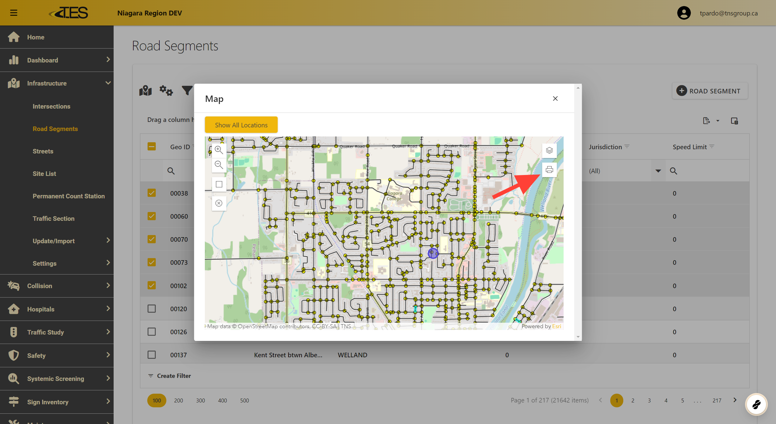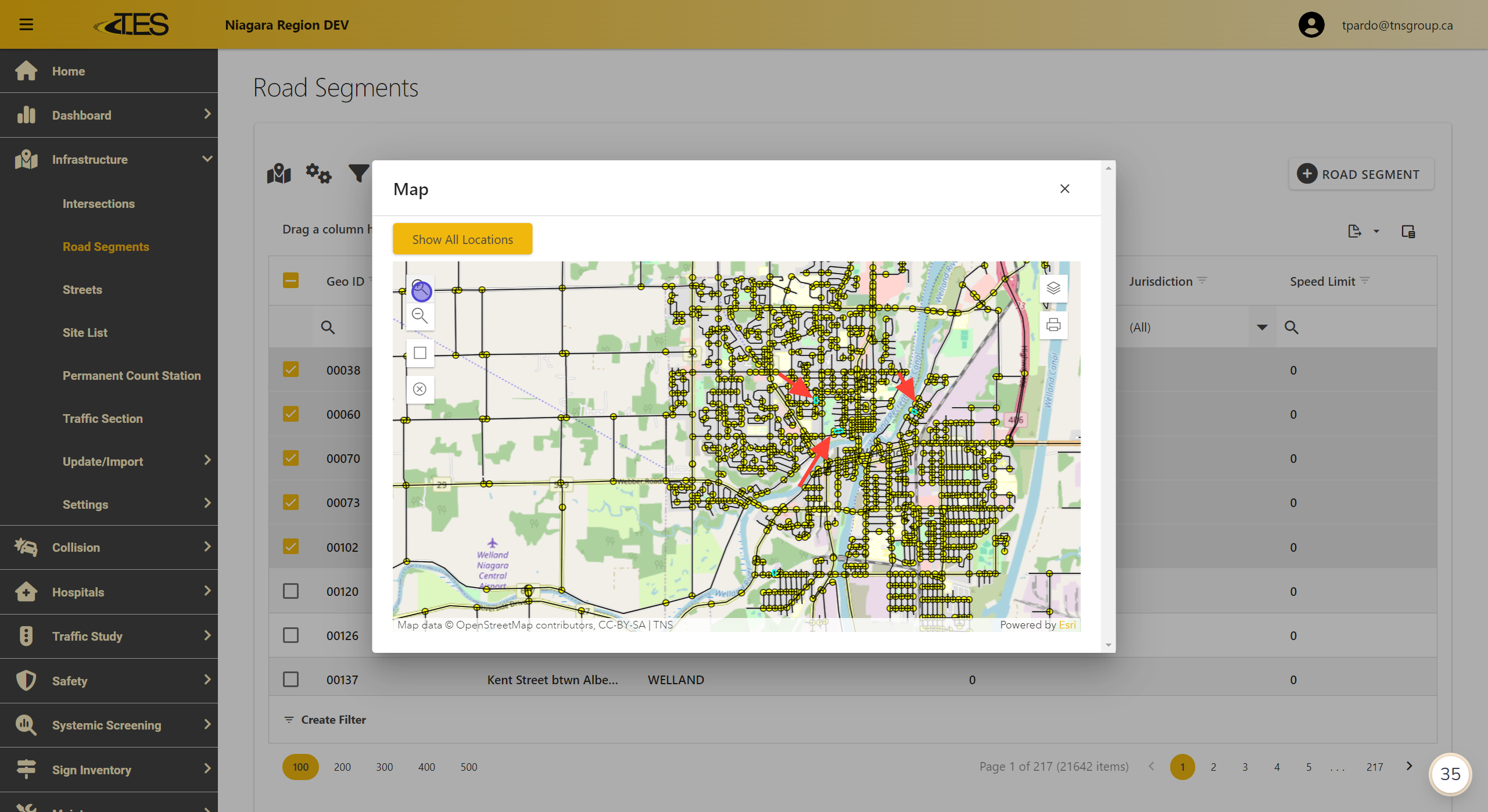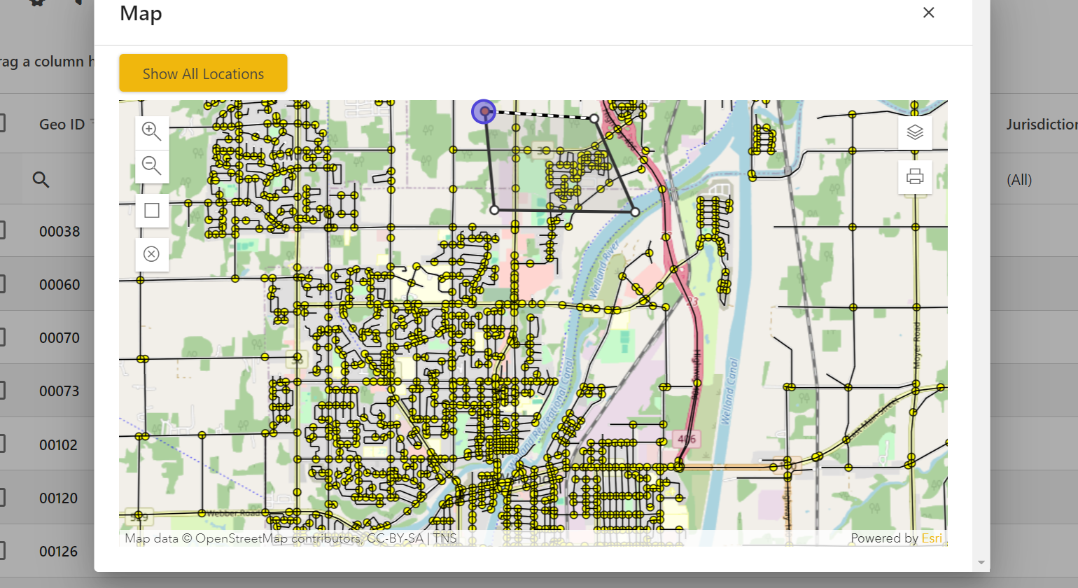 The selected road segments or locations will appear as highlighted points on the map.