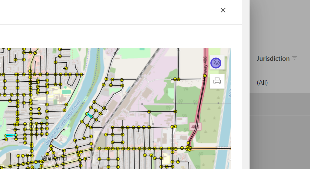 Click the Layer button to manage visibility of layers on the map.