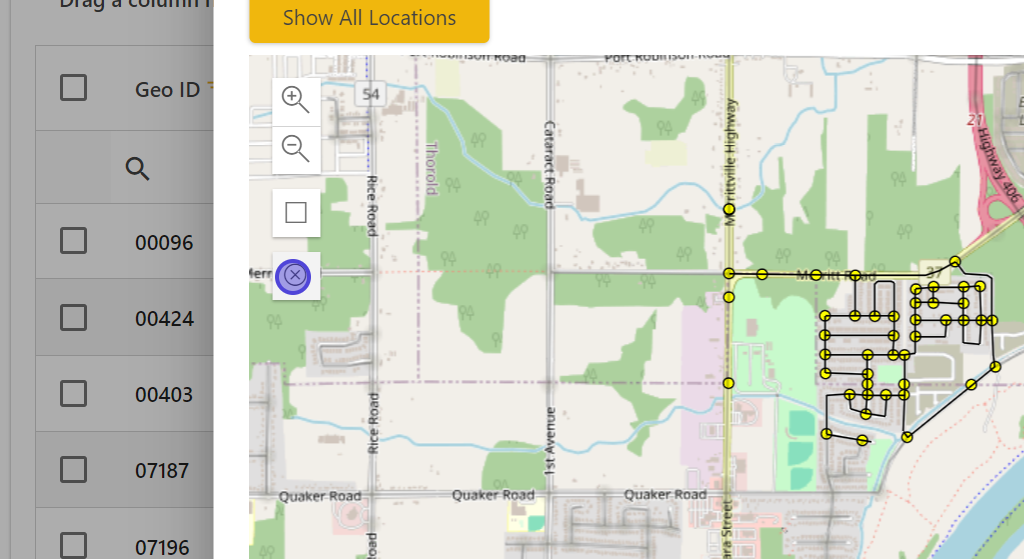 Use the selection tool (a square icon under the zoom buttons) to select locations directly from the map.
