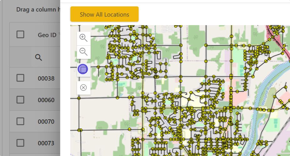 Click on "Show All Locations" to display all selected data on the grid.