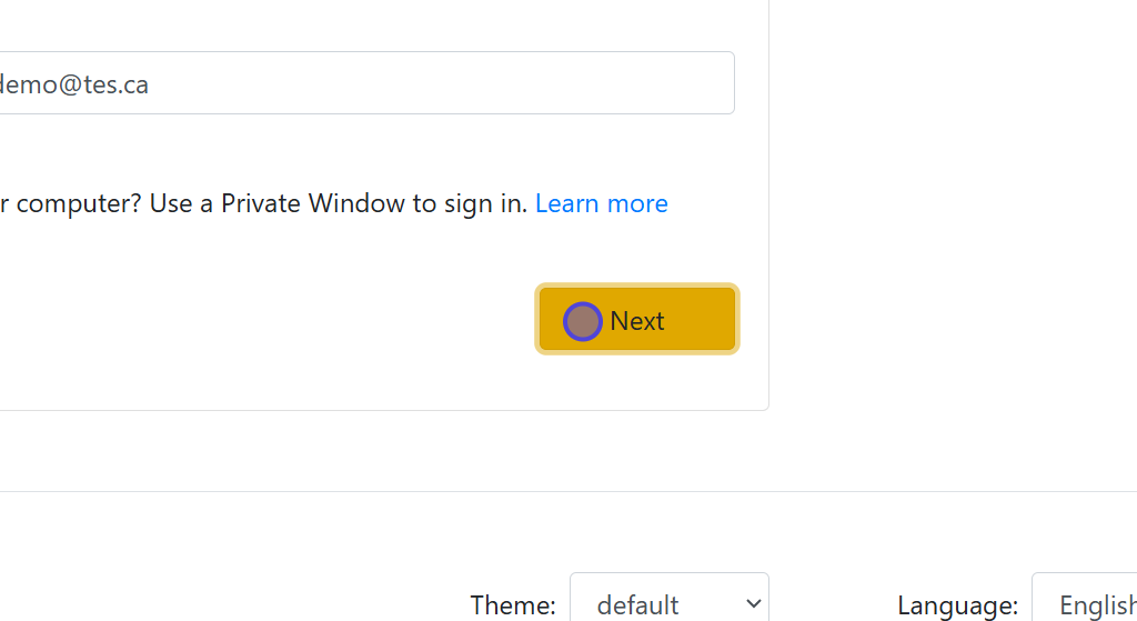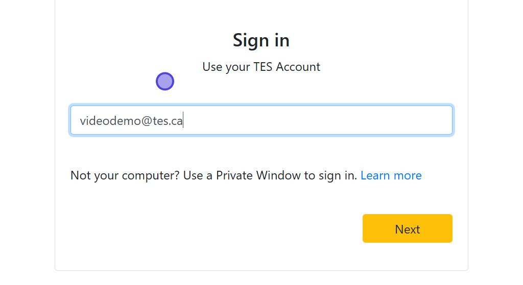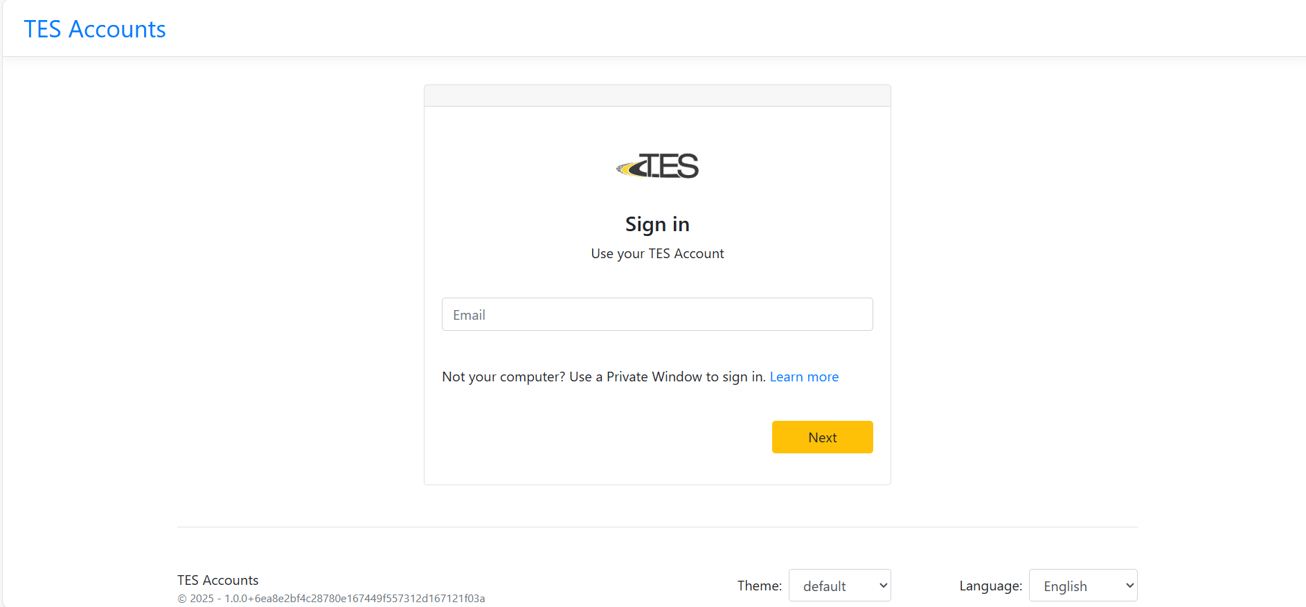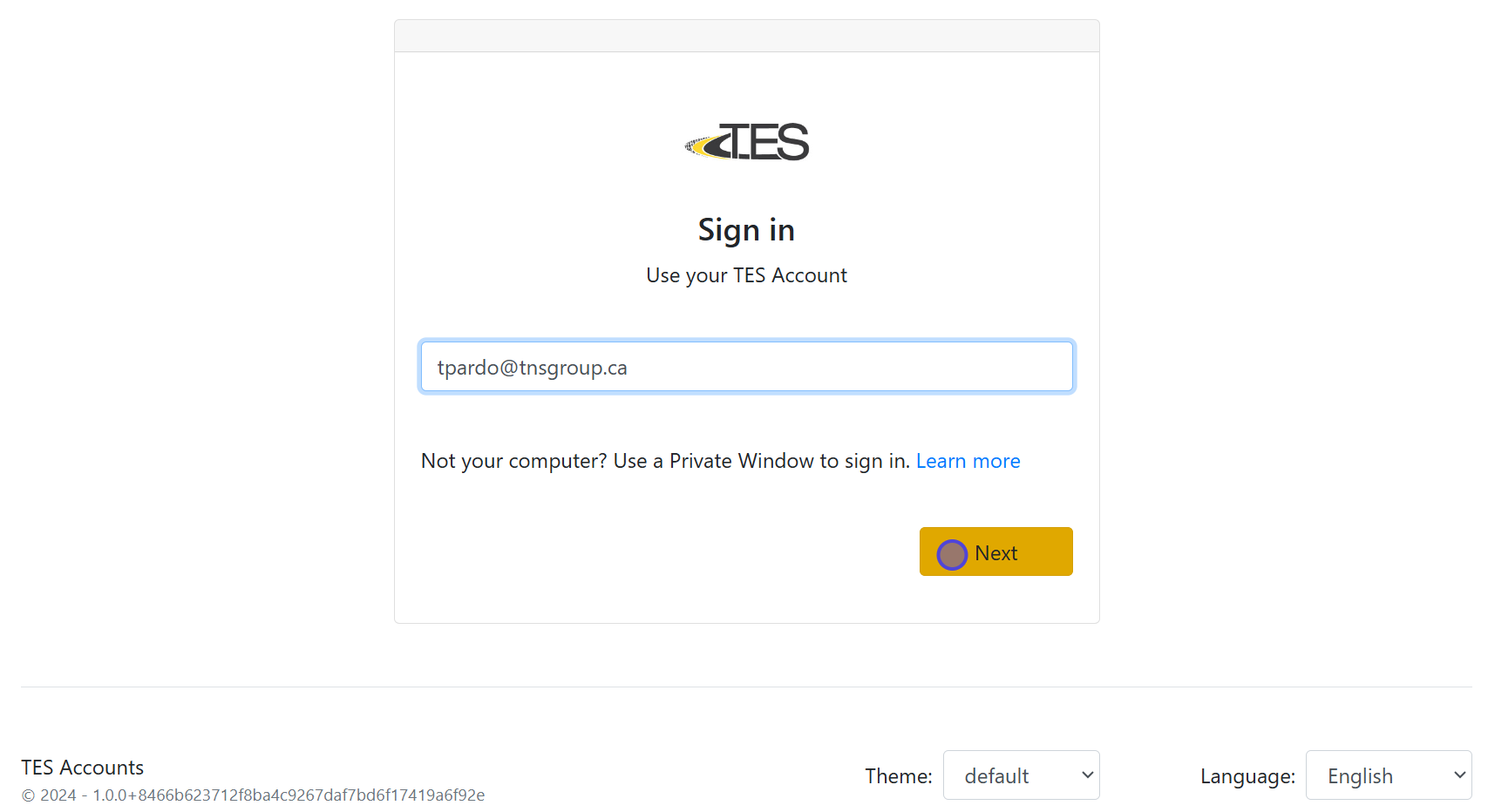 Navigate to the the login page and enter your email address associated with TES. Then click on Next