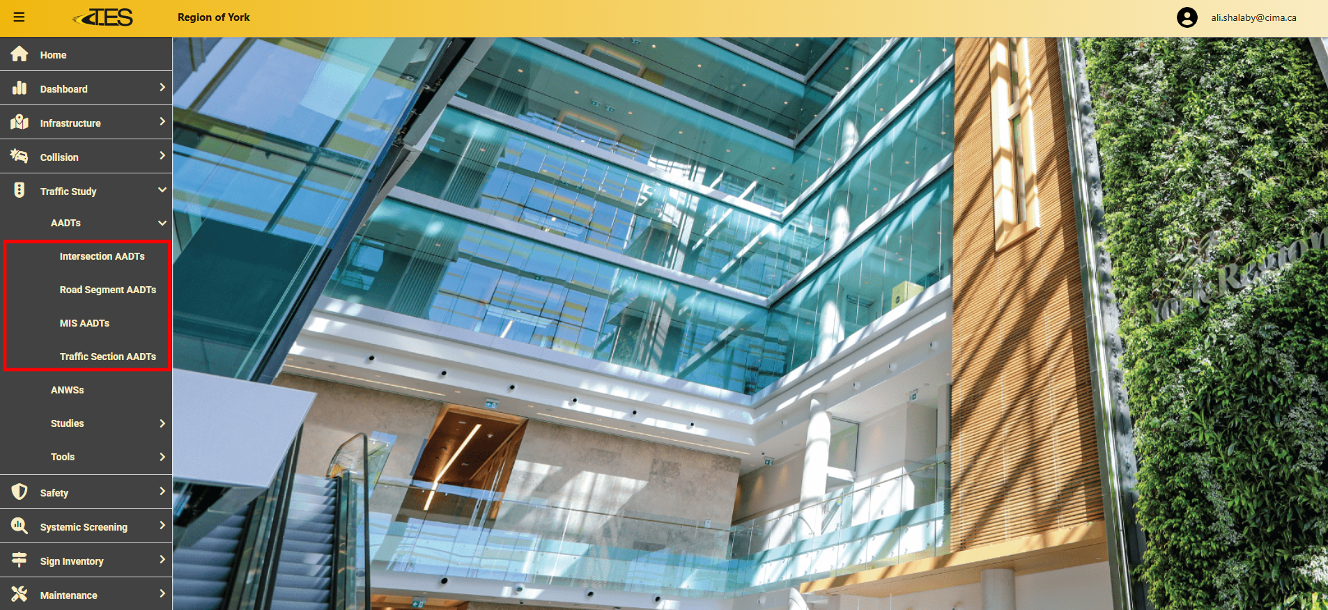 The AADT (Average Annual Daily Traffic) section is broken into the following modules: