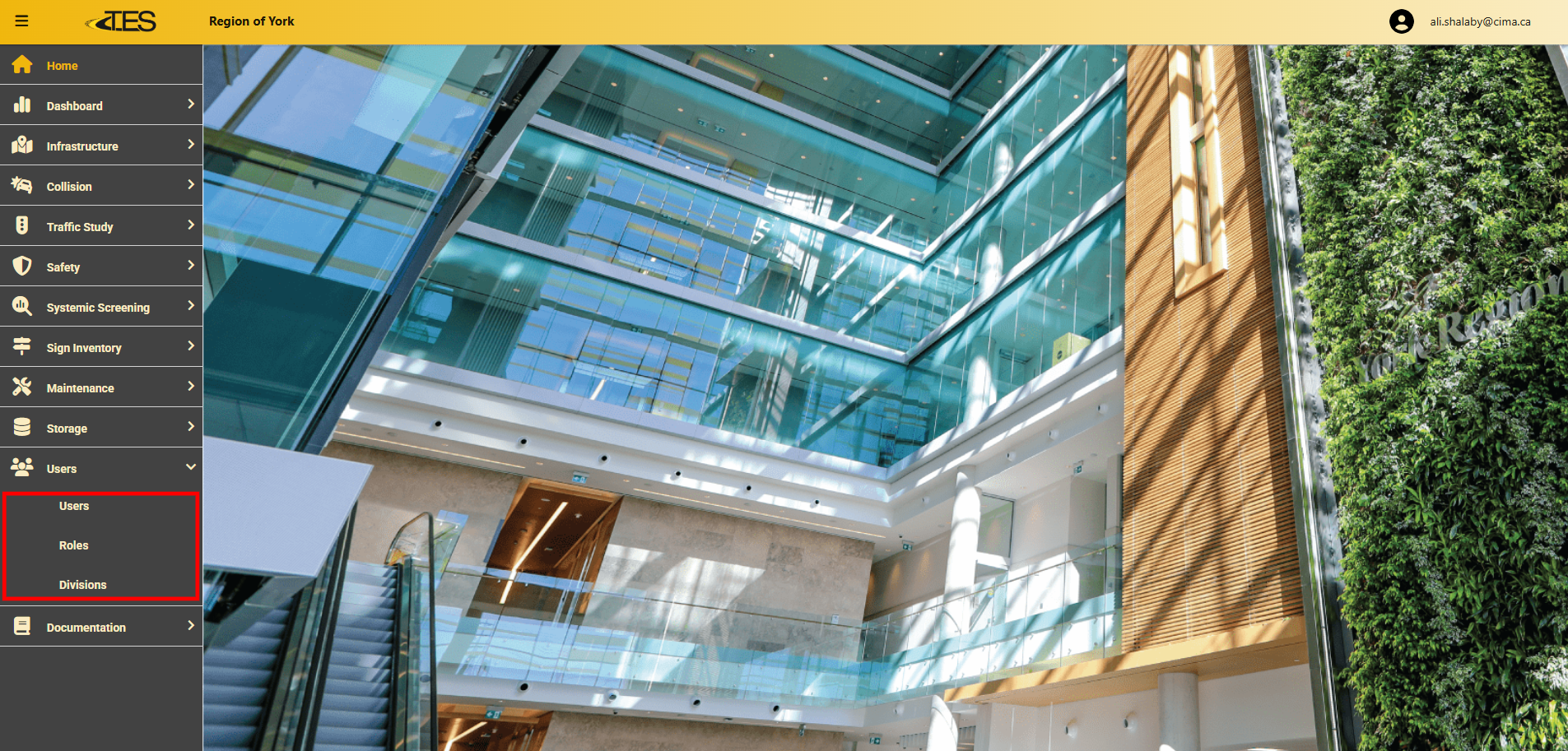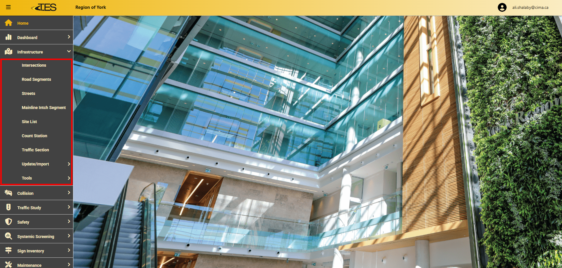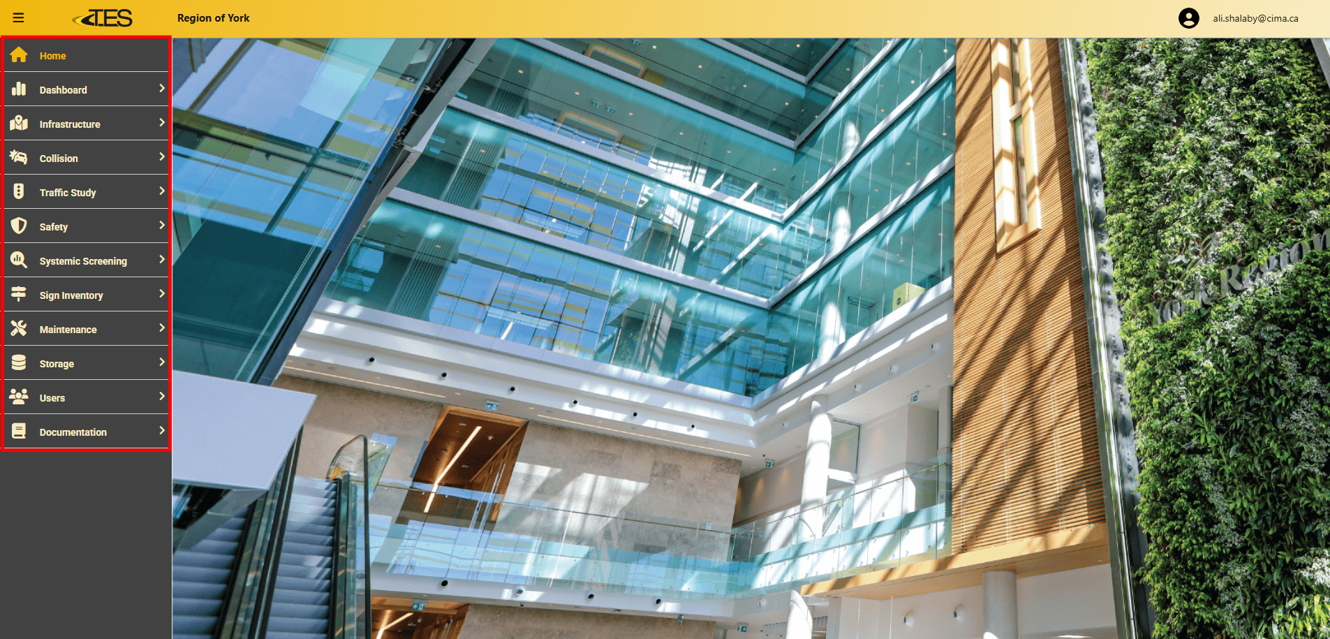 To access TES features, look at the left-hand side of the interface for the module column. This column lists all the main sections available, such as: