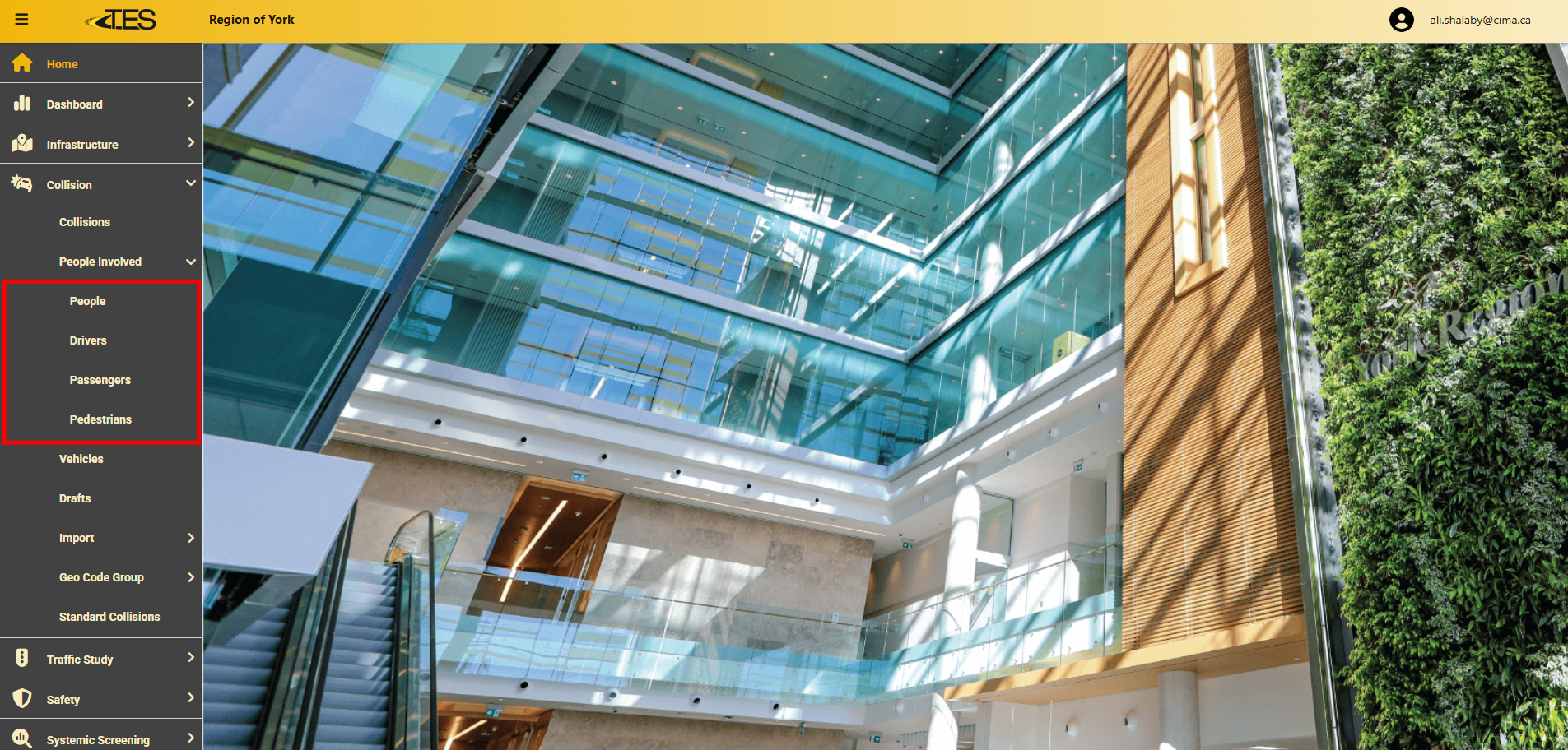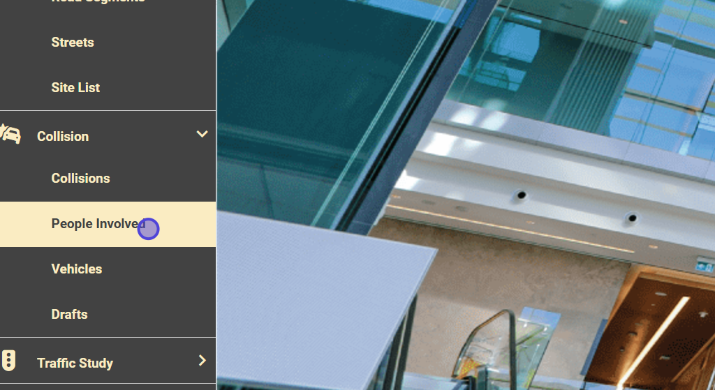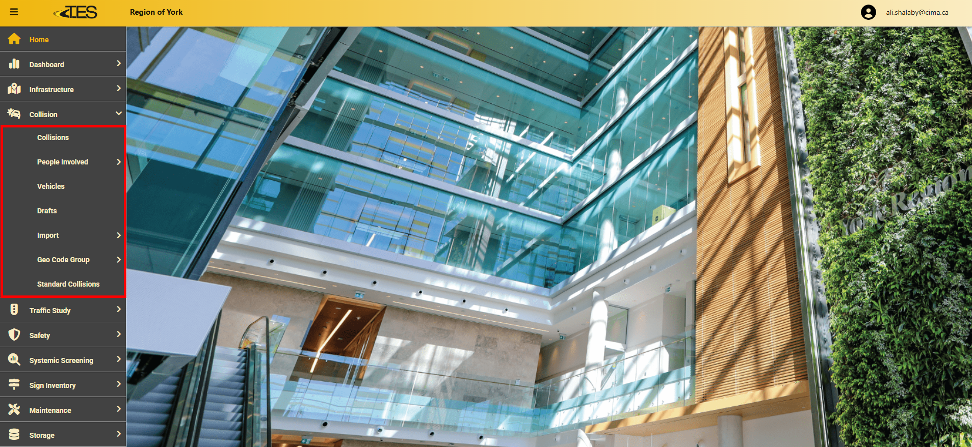 The Collision section includes tools for managing accident-related data. Available modules include:
