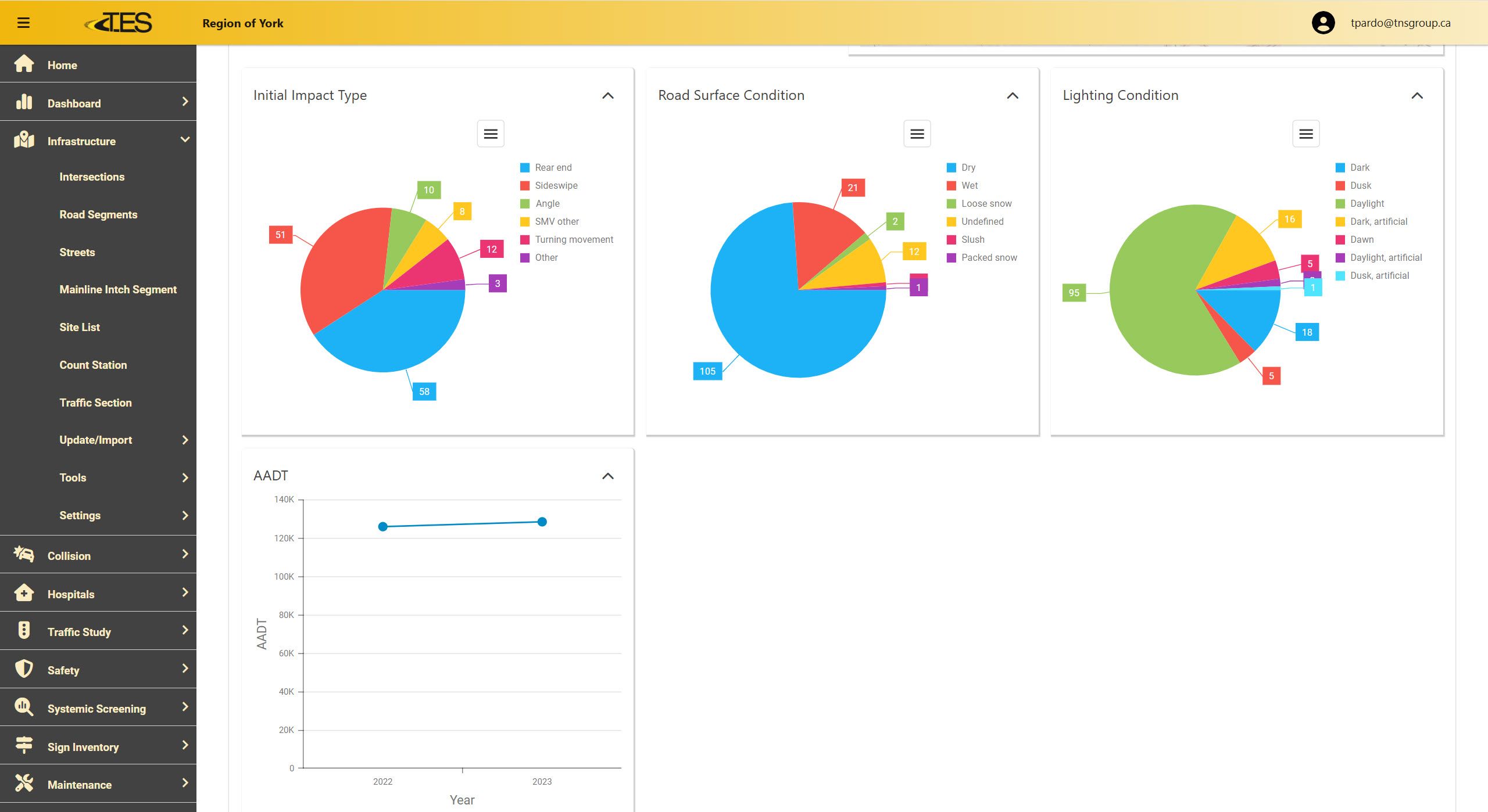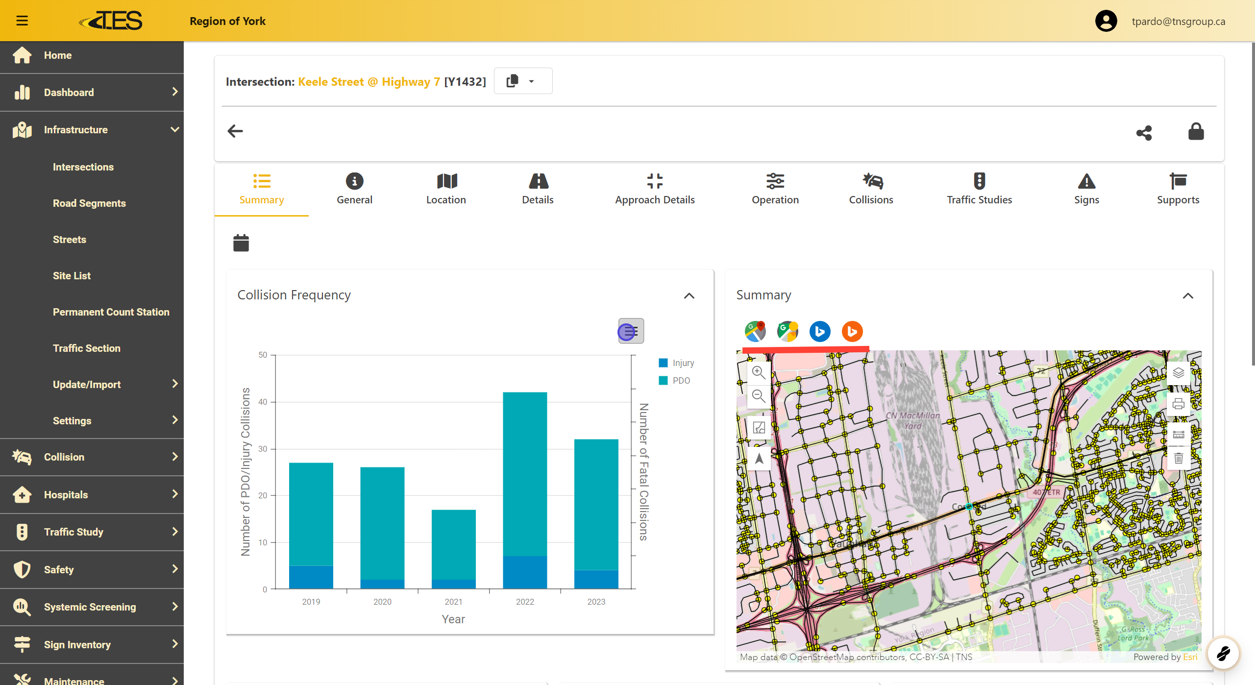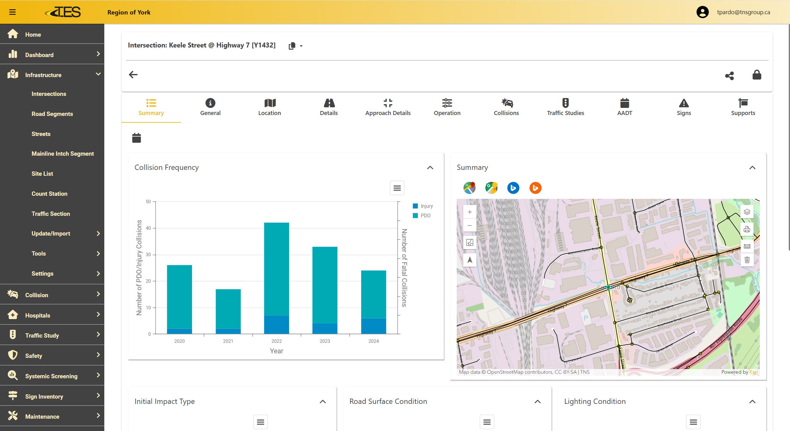 Summary : Displays a map, collision frequency graph, and AADT graph for the last 5 years.