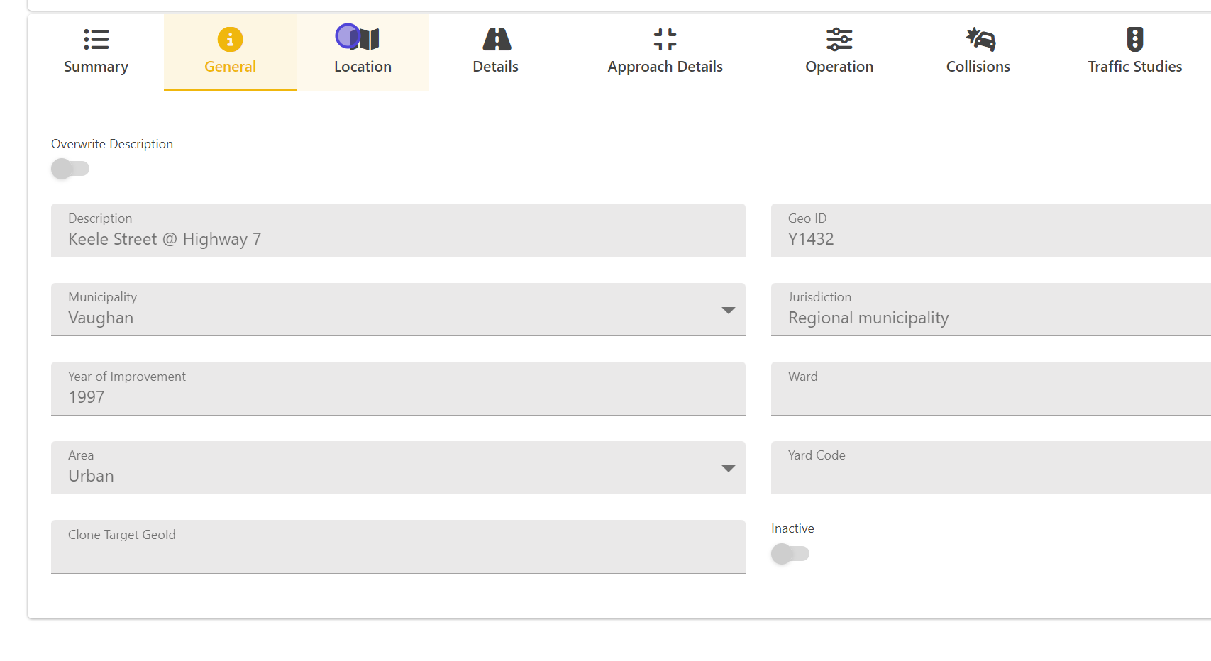 General : Provides basic information such as description, municipality, and jurisdiction.
