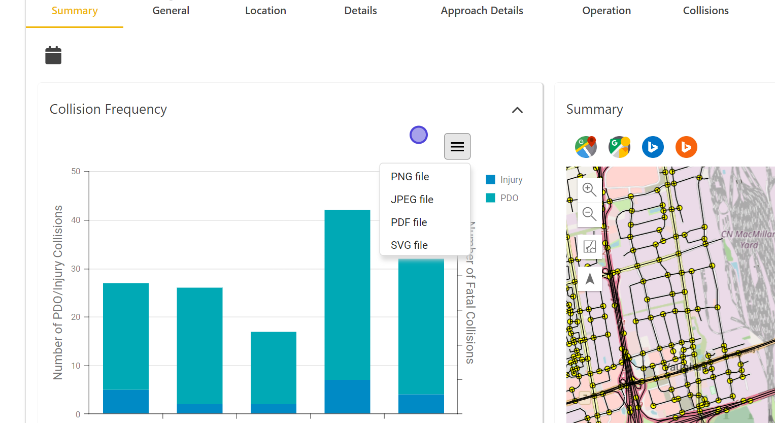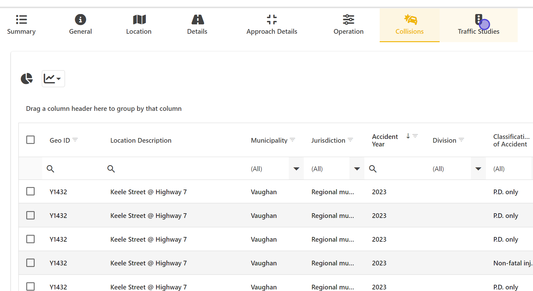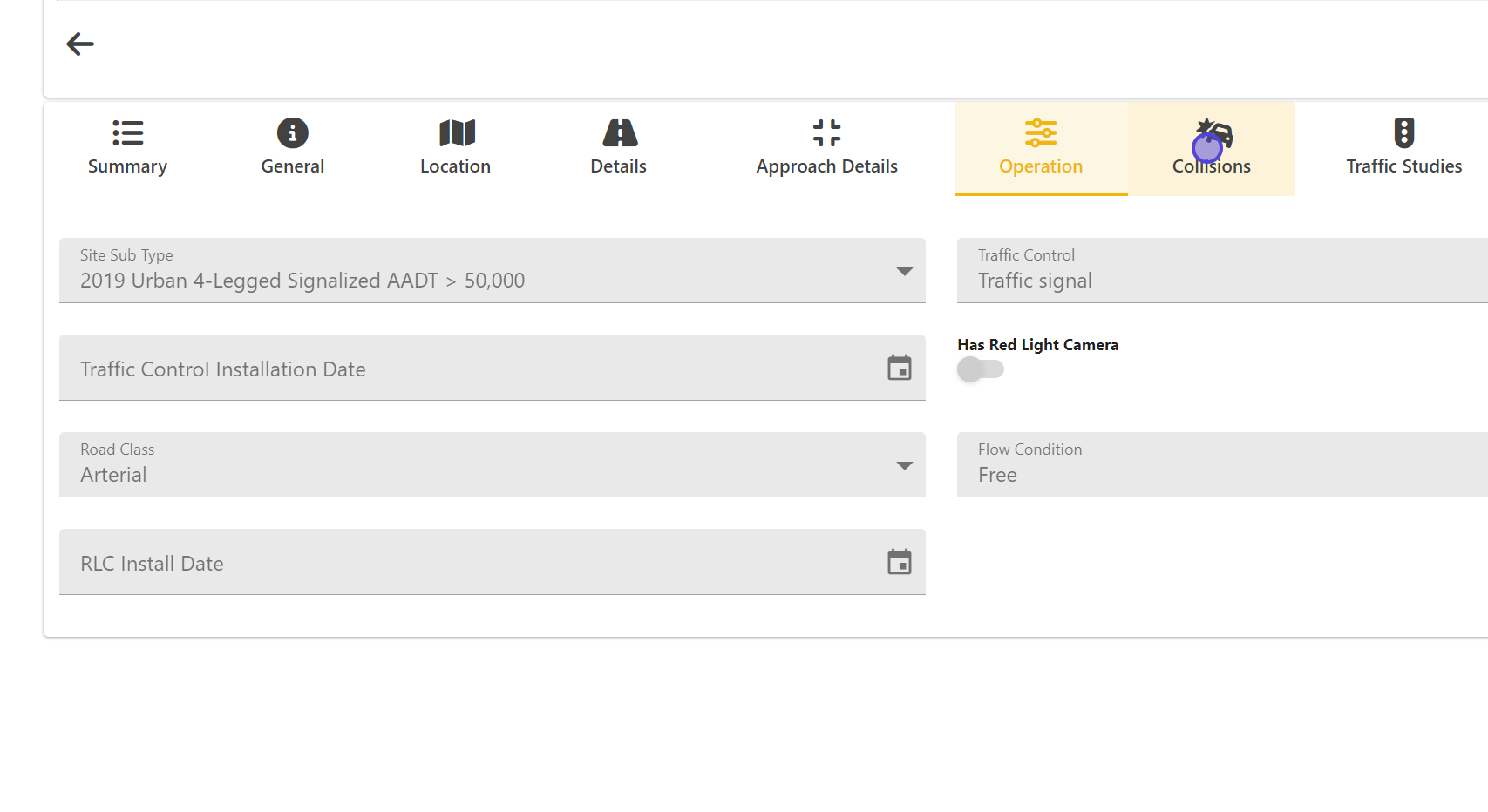Collisions : Provides a grid view of reported collisions at the intersection.