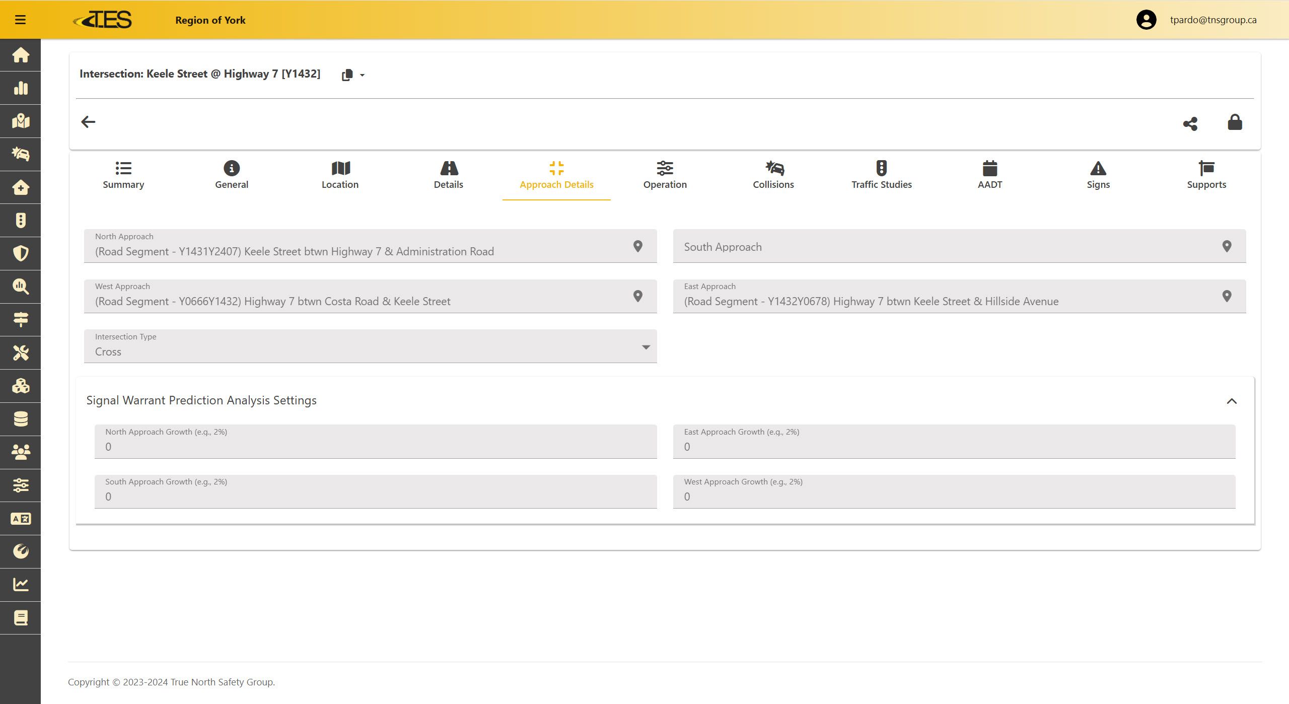 Approach Details is used for AADT prediction. TES Cloud has a built-in function to populate Approach Details using the GIS.