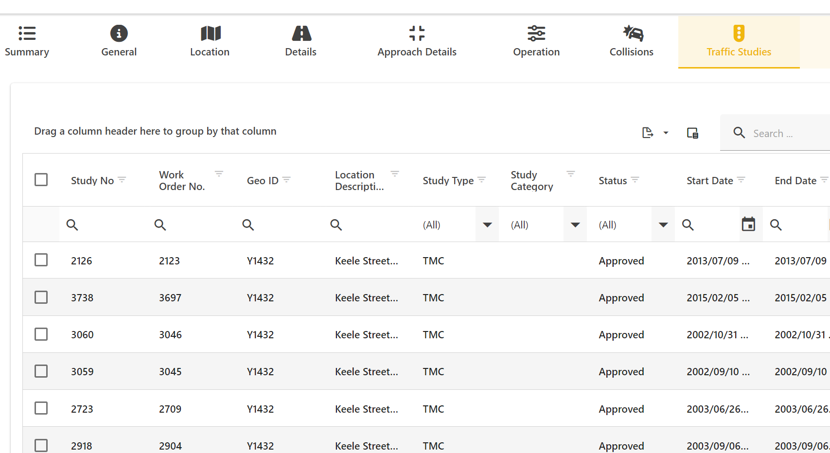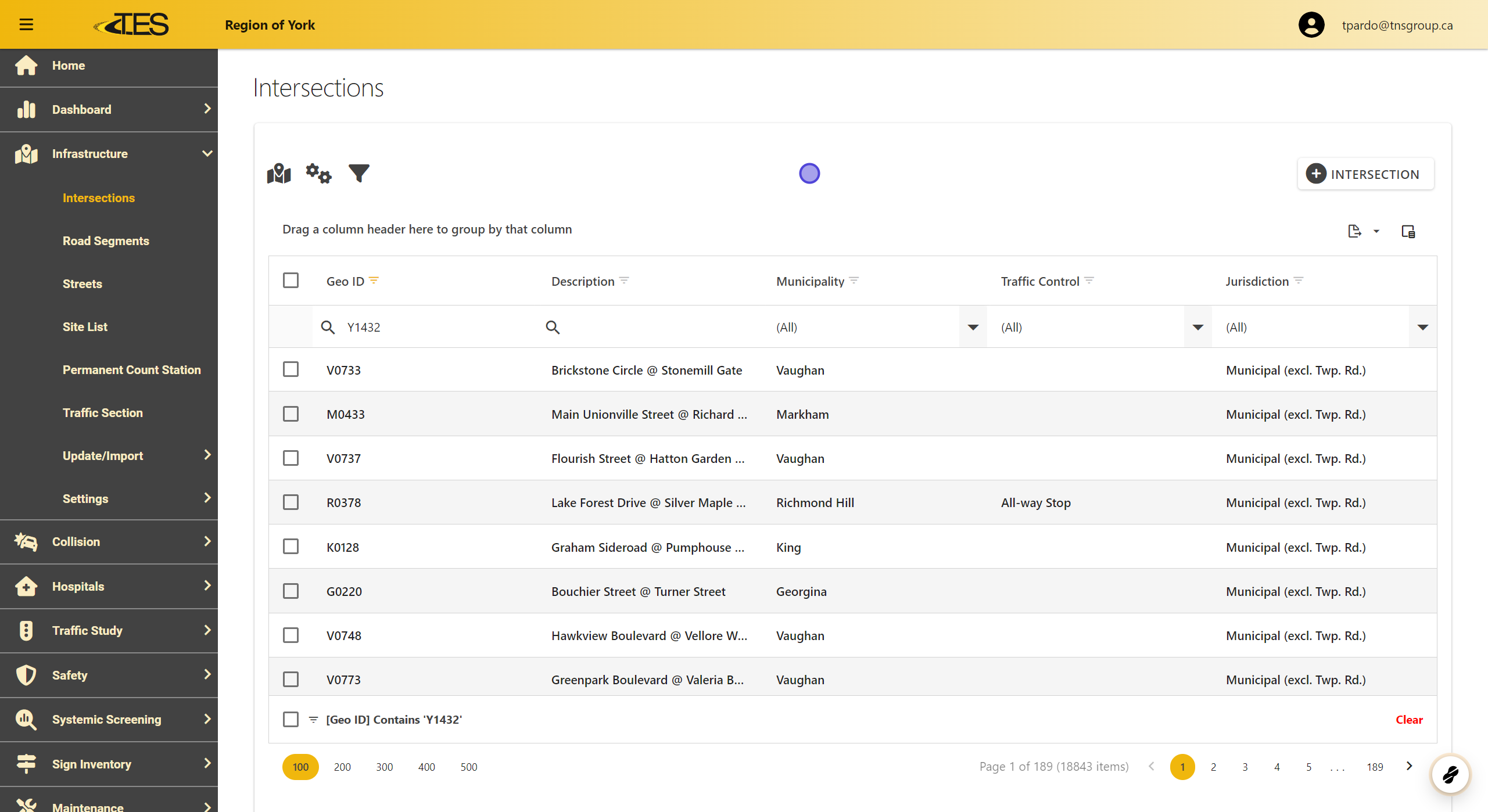 Navigate to the Intersections module from the main menu to see a list of all intersections.