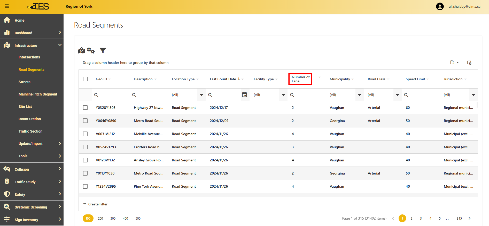 Represents the total number of lanes available for vehicular traffic on a given road segment.