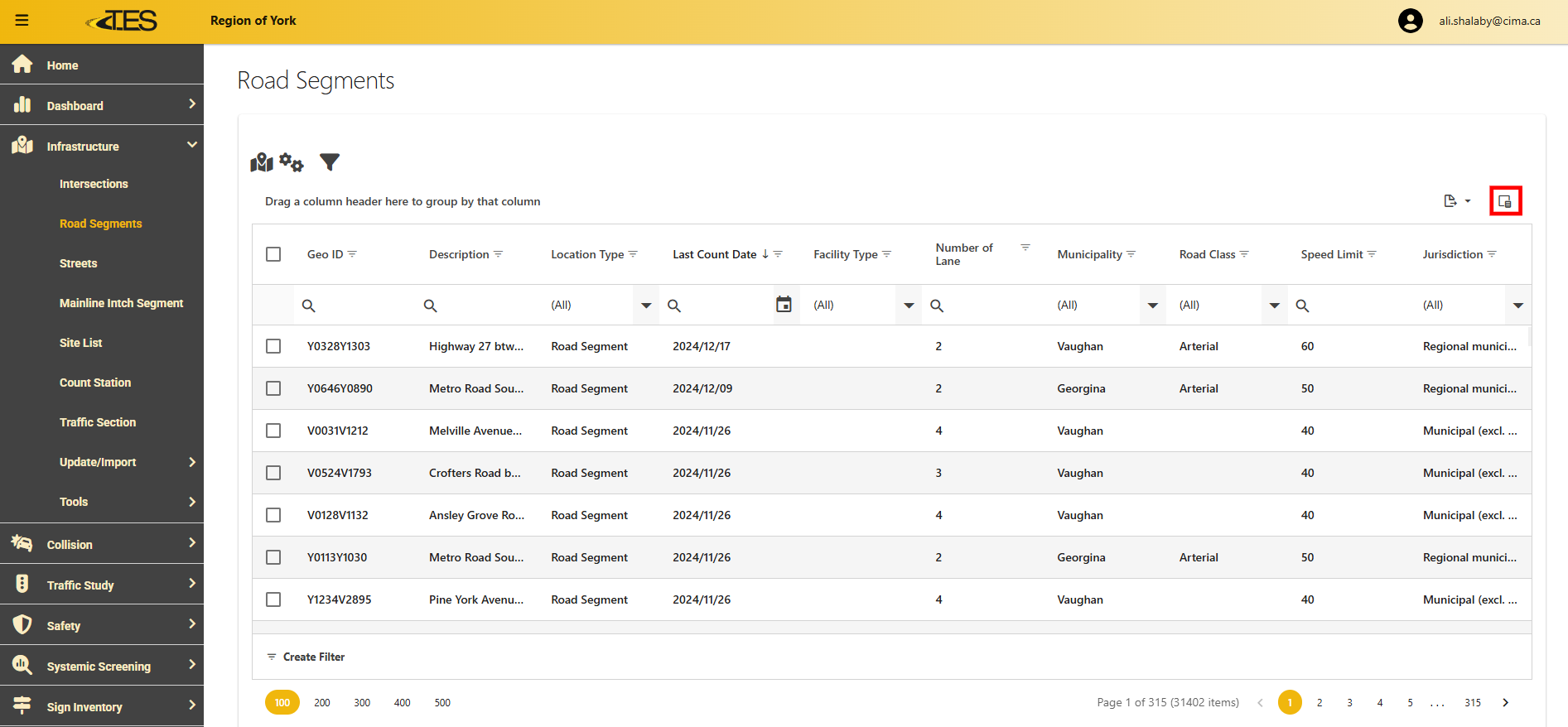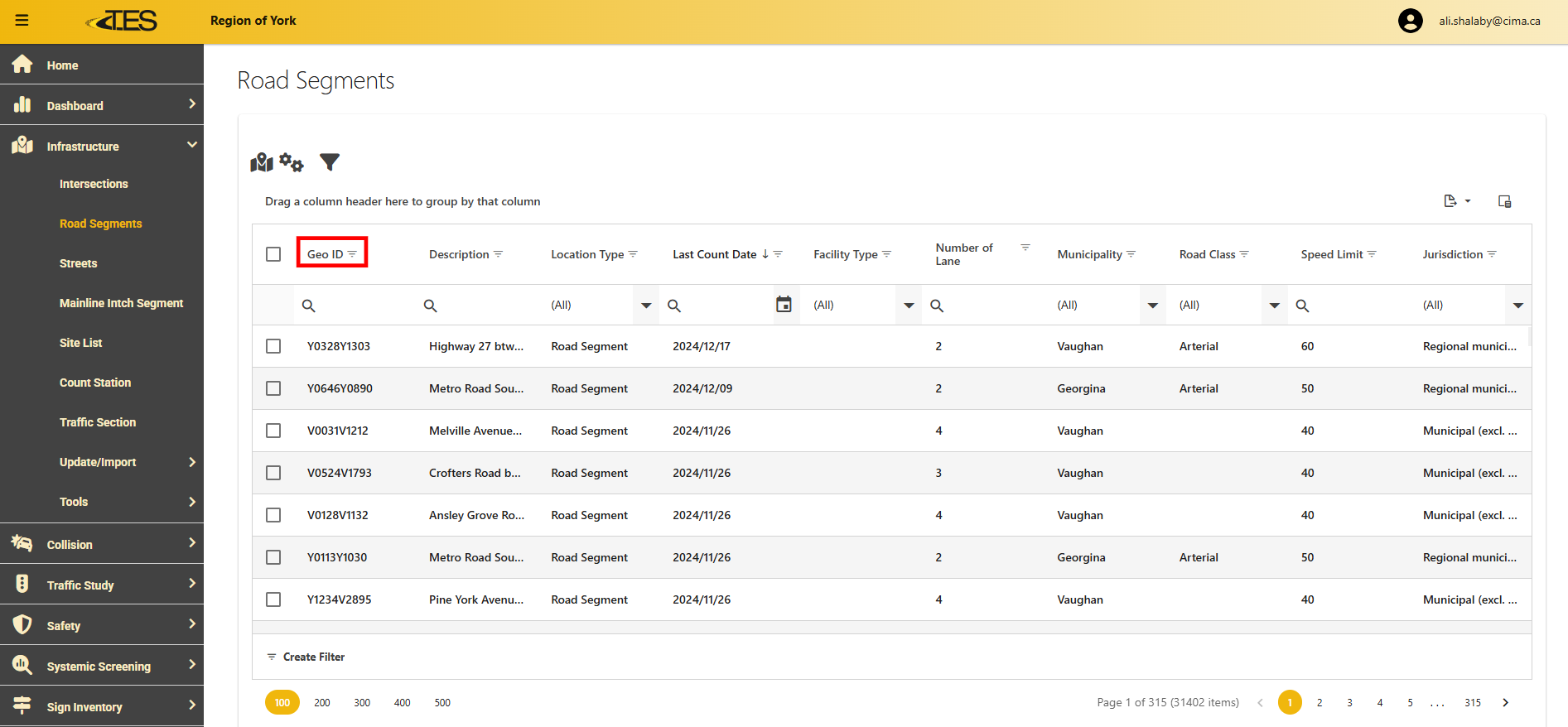 The GEOID column displays the unique identifier for each road segment, linking it to its geographical representation on the GIS map.
