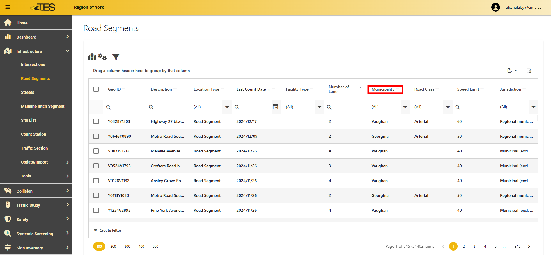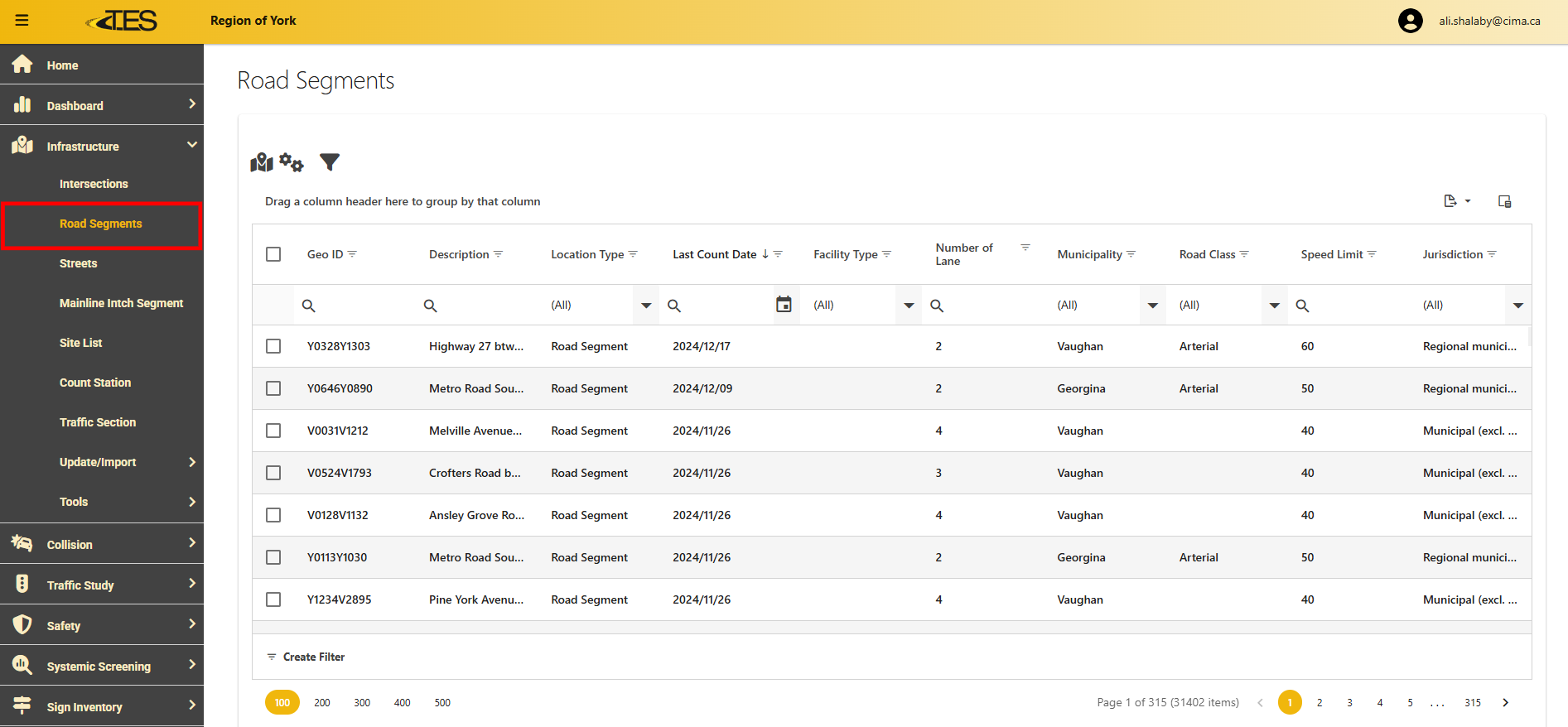 This column provides the name or description of the road segment, such as nearby streets or landmarks.