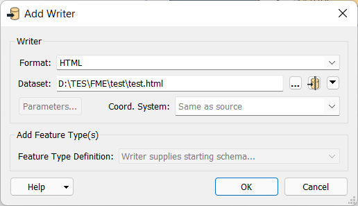 The last step is to add a Writer to write the things we did on an HTML Page. Add a Writer by clicking on it in the header of the FME App.