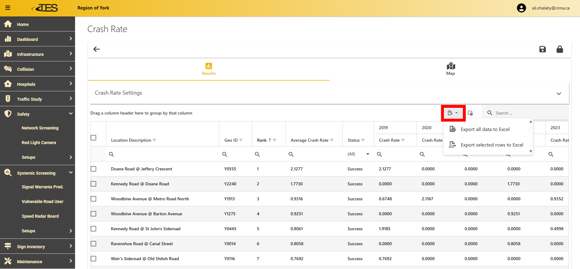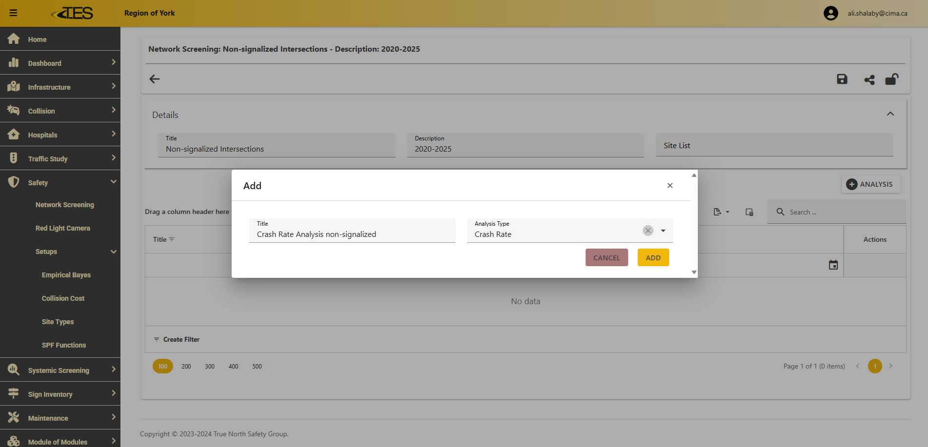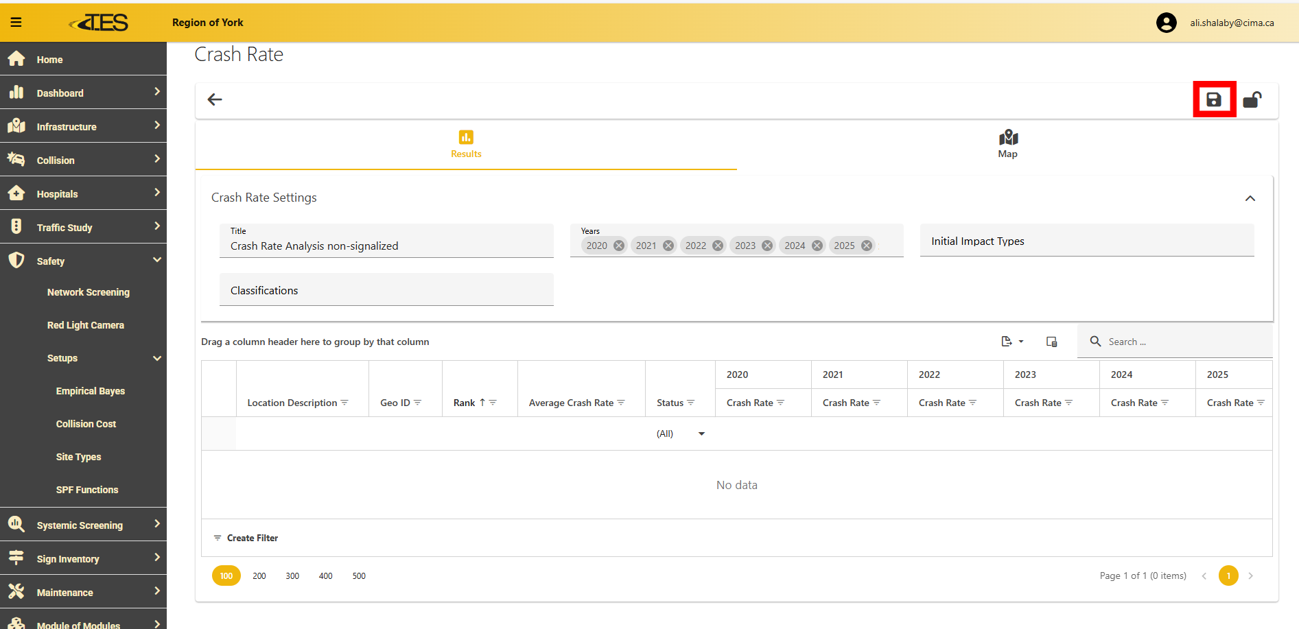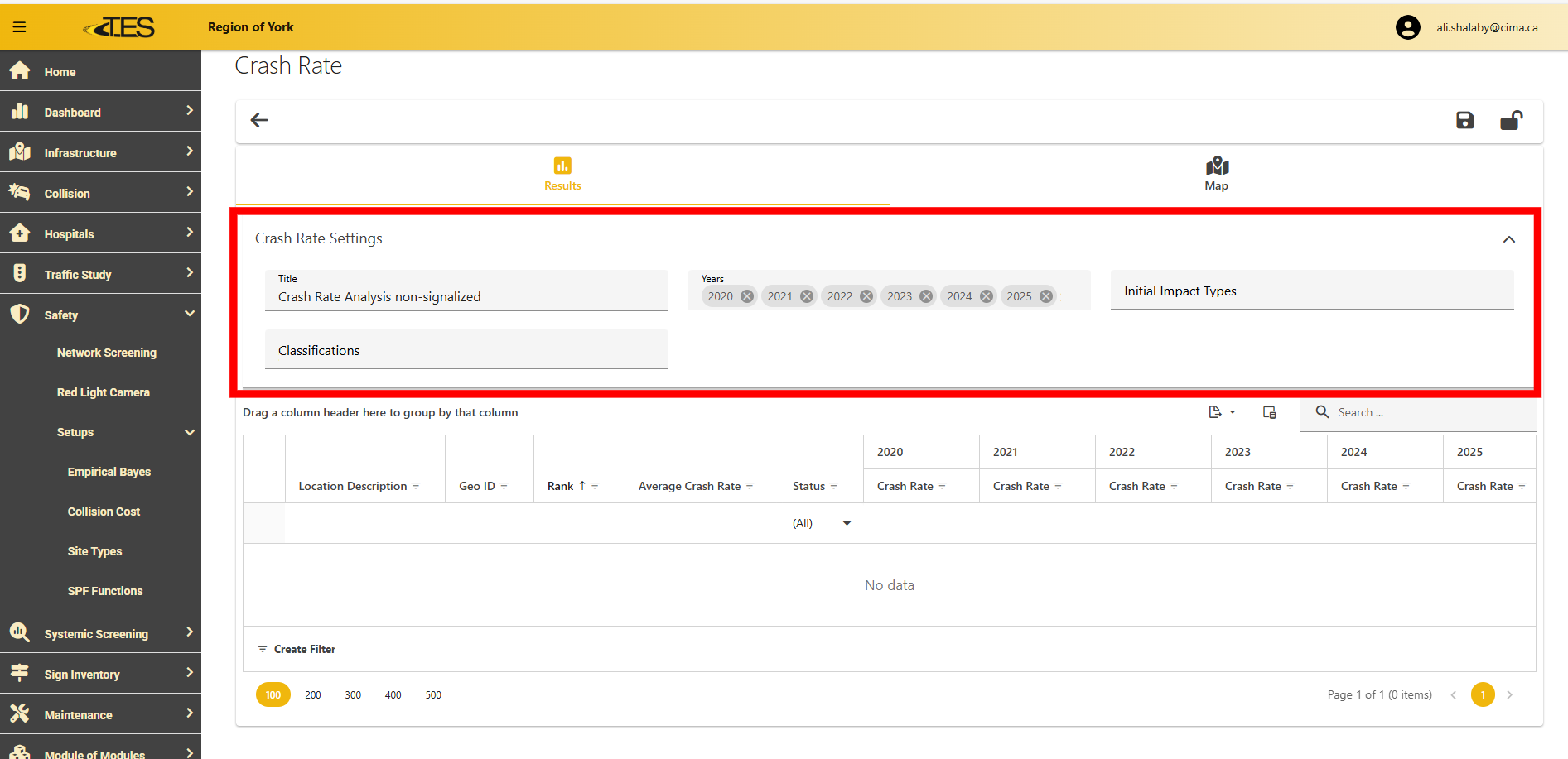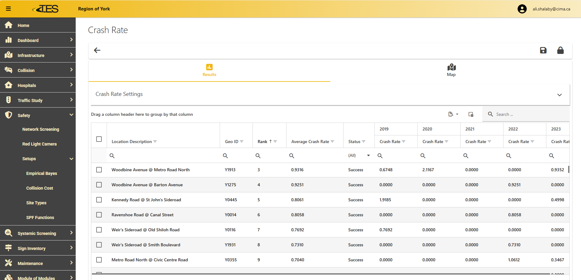 The Crash Rate module is a network screening tool in TES used to identify and rank non-signalized intersections by safety risk. It calculates and compares crash rates over time to help prioritize sites for review or intervention.