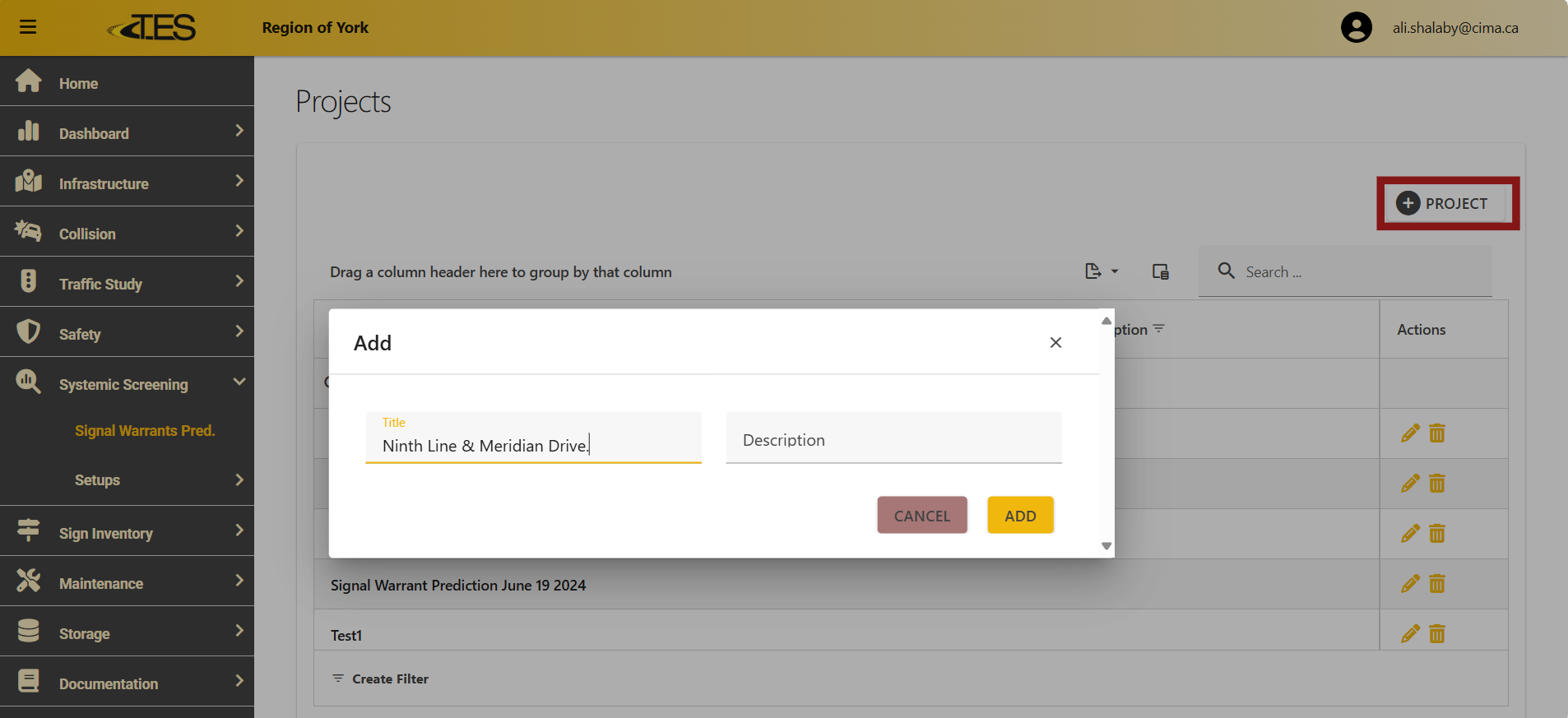 This documentation shows users how to create new projects and save their work to organize and track signal warrant analyses for different locations.