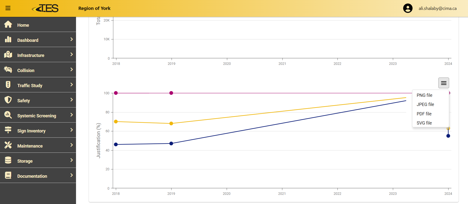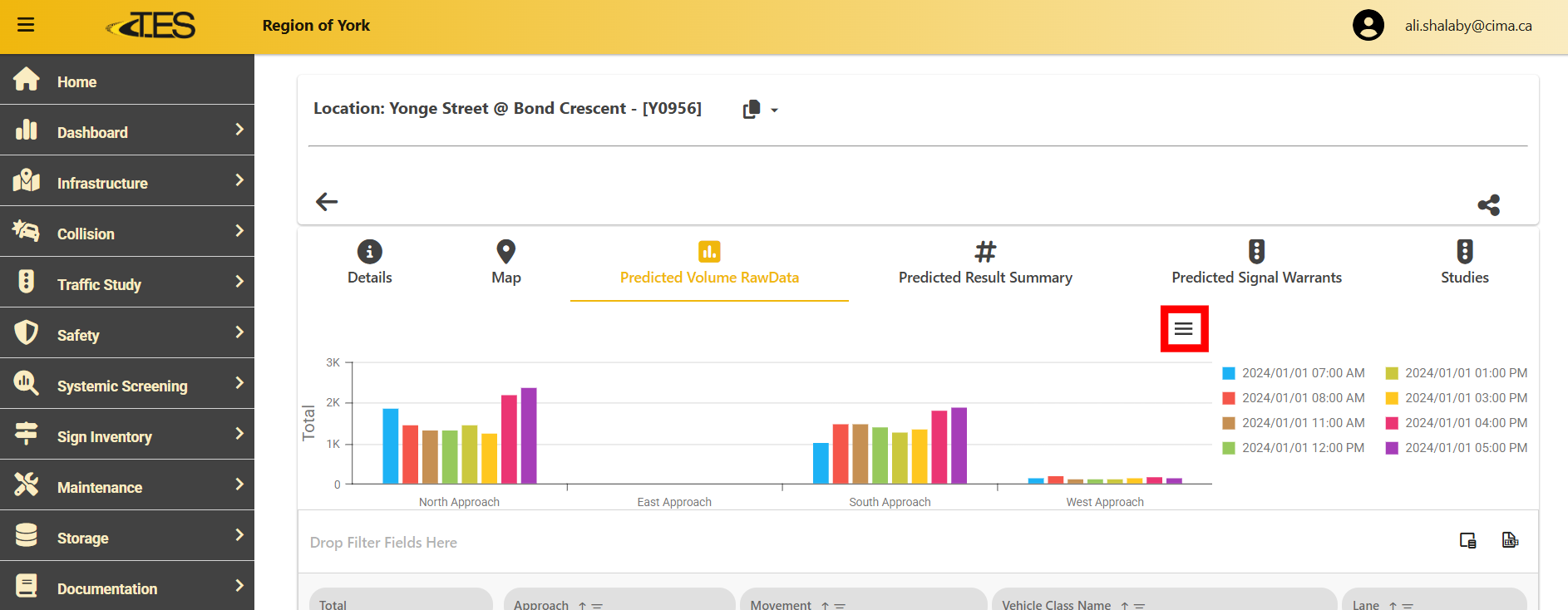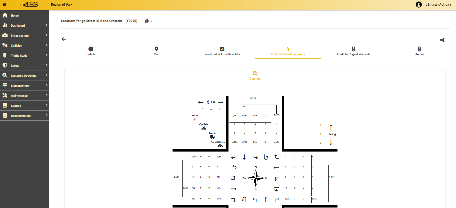 The Predicted Signal Warrants tab evaluates whether a traffic signal is warranted at the given location based on various justifications. These criteria are based on the justifications outlined in Book 12 of the Ontario Traffic Manual.