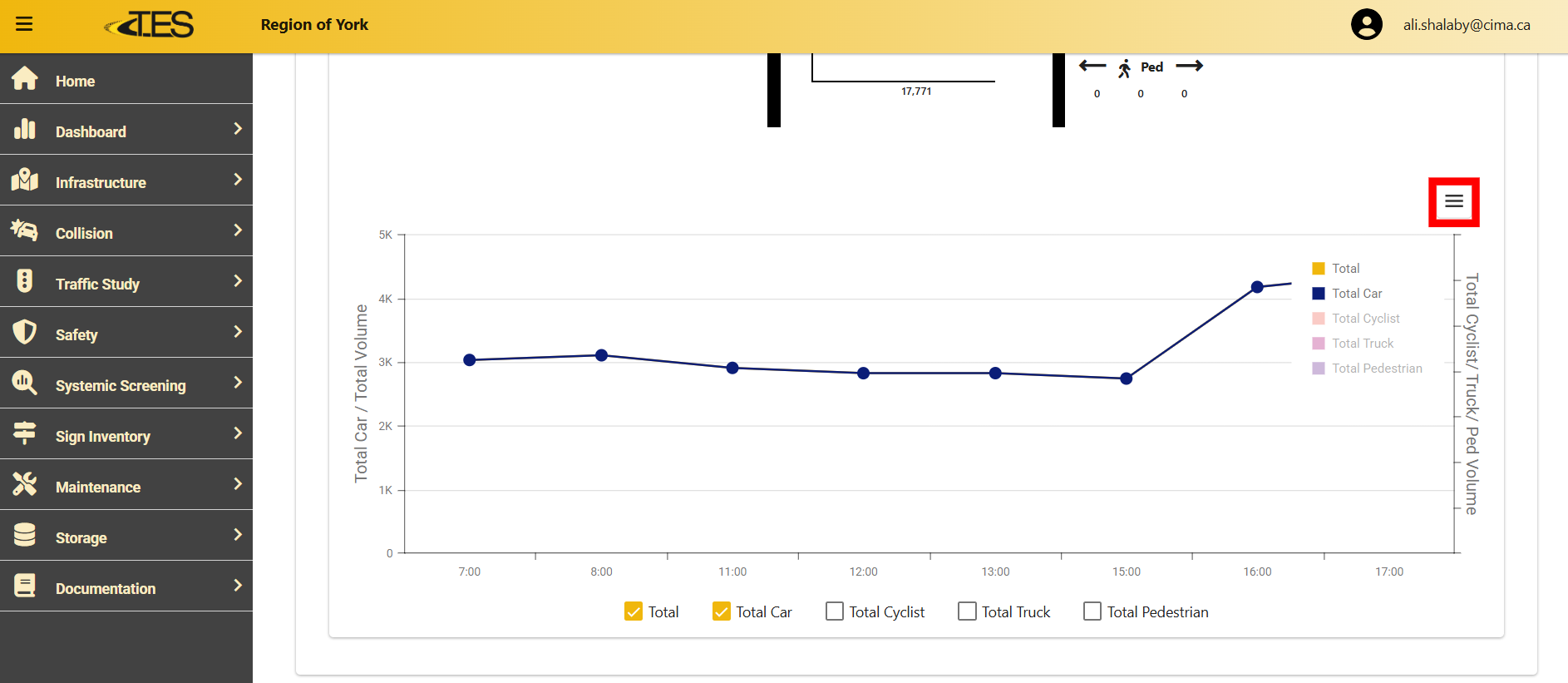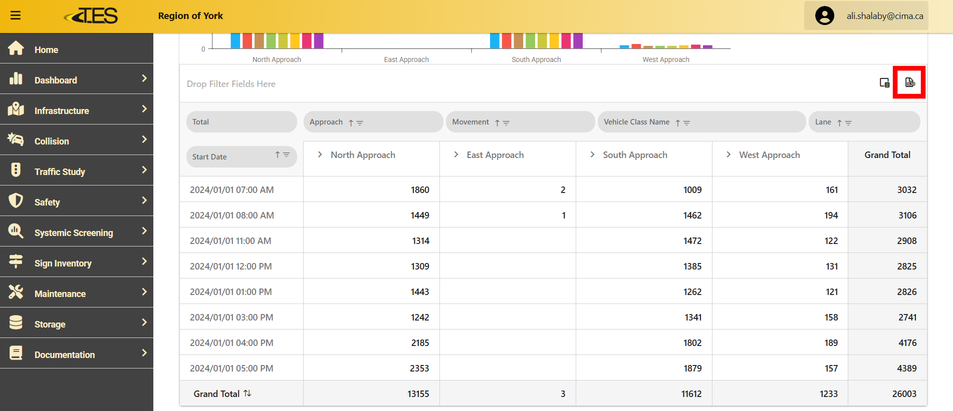 To view detailed results of a specific intersection, click on the row of the intersection you want to access in the results table. This action will open a detailed view of the selected intersection