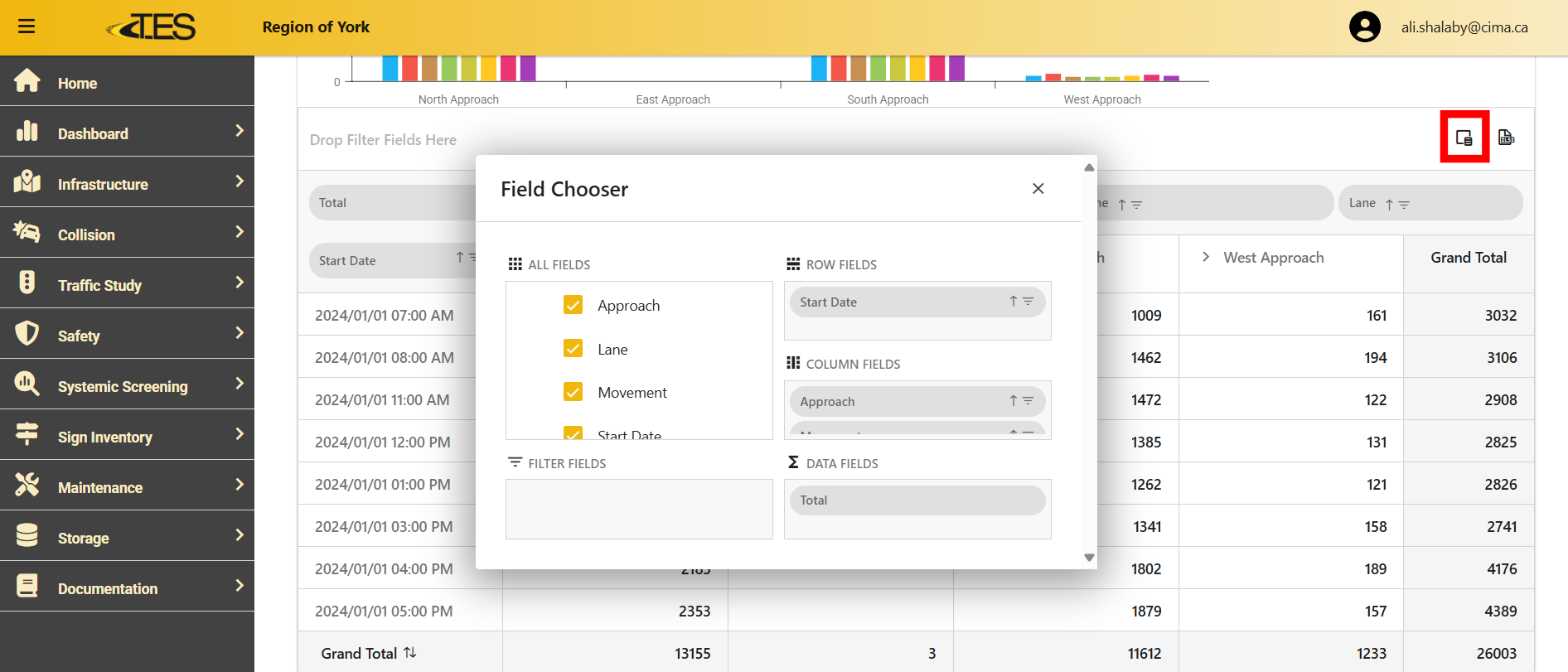 Below the chart, you’ll find a pivot table that lists predicted volumes based on the order of the fields on top of the table