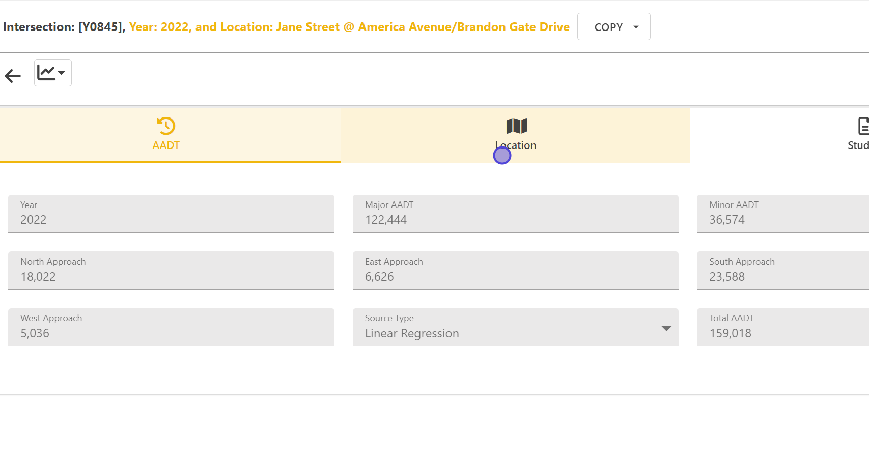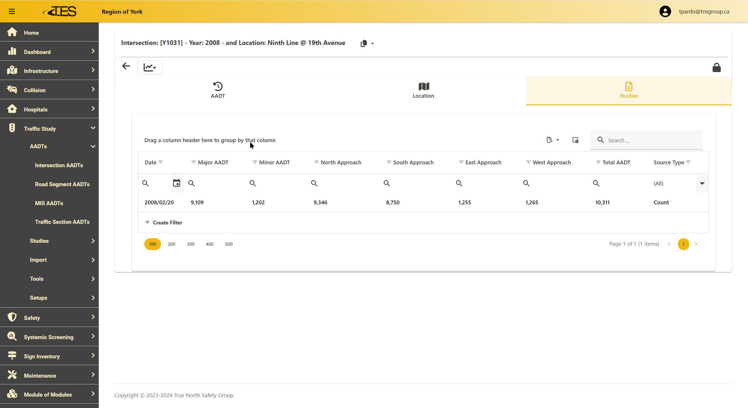 Navigate to the Traffic Study > Intersections AADTs section on the left-hand menu.