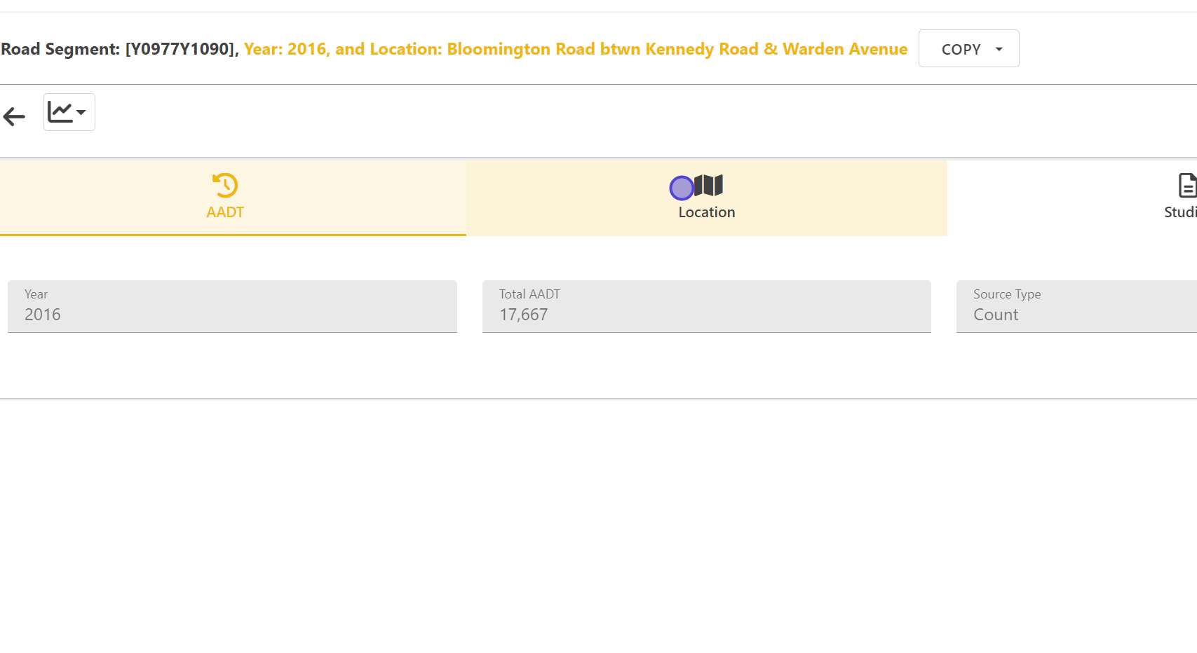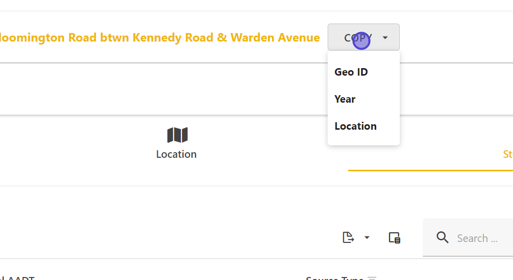 Click the COPY button and select the data you want to copy (Geo ID, Year, or Location). This option allows you to quickly duplicate specific information for use in other modules or documentation.