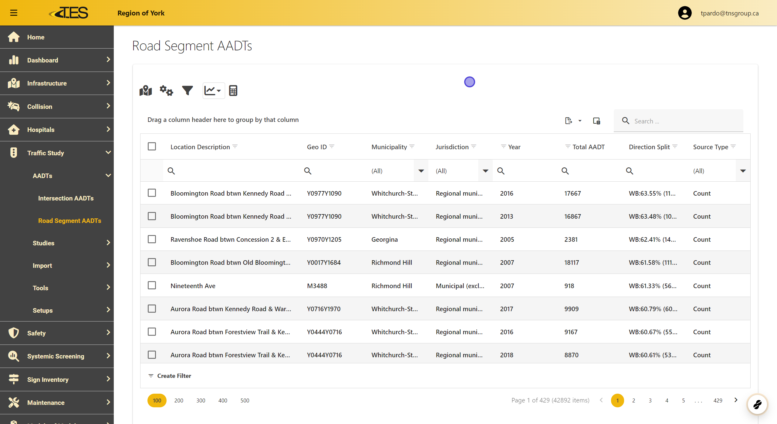 This section explains how to use the Road Segment AADTs module in TES to view, analyze, and manage Annual Average Daily Traffic (AADT) data for specific road segments.