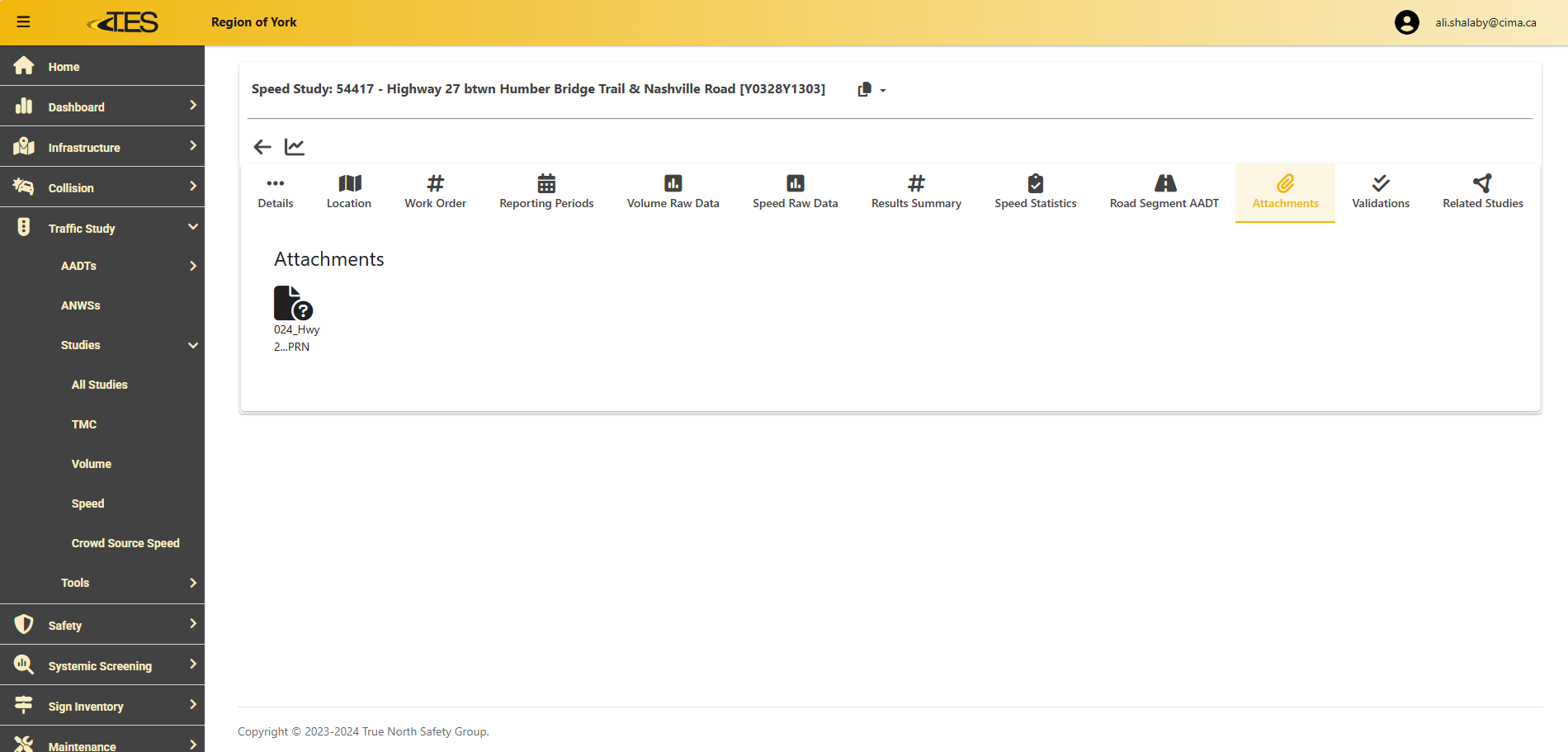 The Attachments Tab displays any files attached to the study, including files used for importing data.