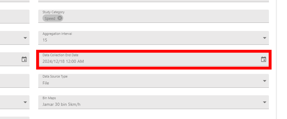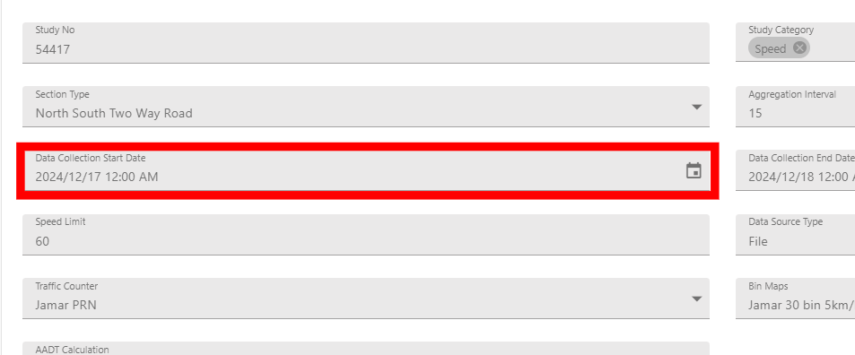 This field displays the start date and time for the data collection process, indicating when the study officially began.