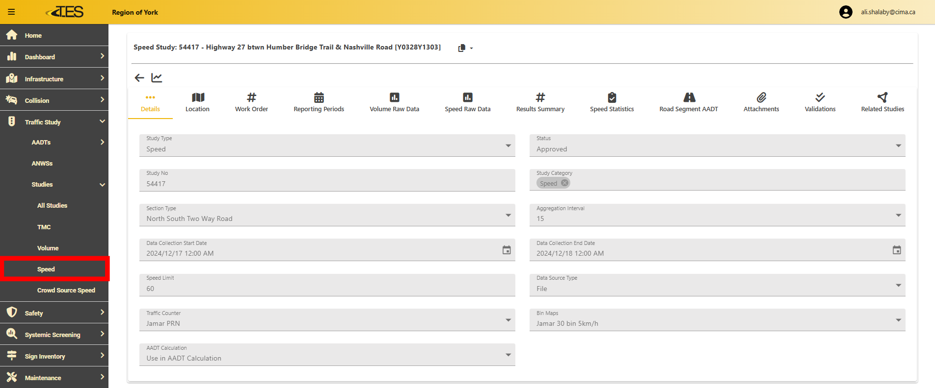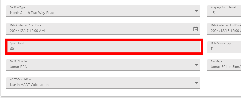 The speed limit field records the legal speed limit for the location where the study was conducted.
