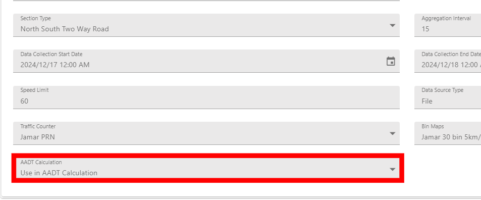 This field determines whether the study is used in the Average Annual Daily Traffic (AADT) calculations. By default, the study is included in AADT calculations, but you can set it to: