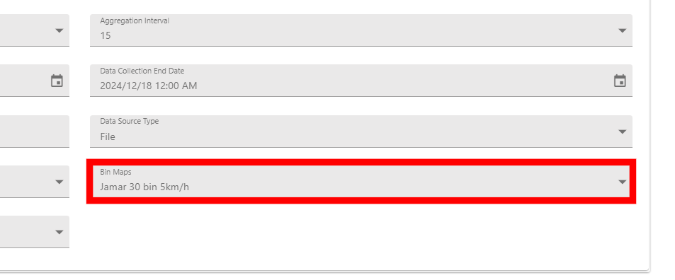 The Bin Maps field shows the specific bin map configuration used during the study.