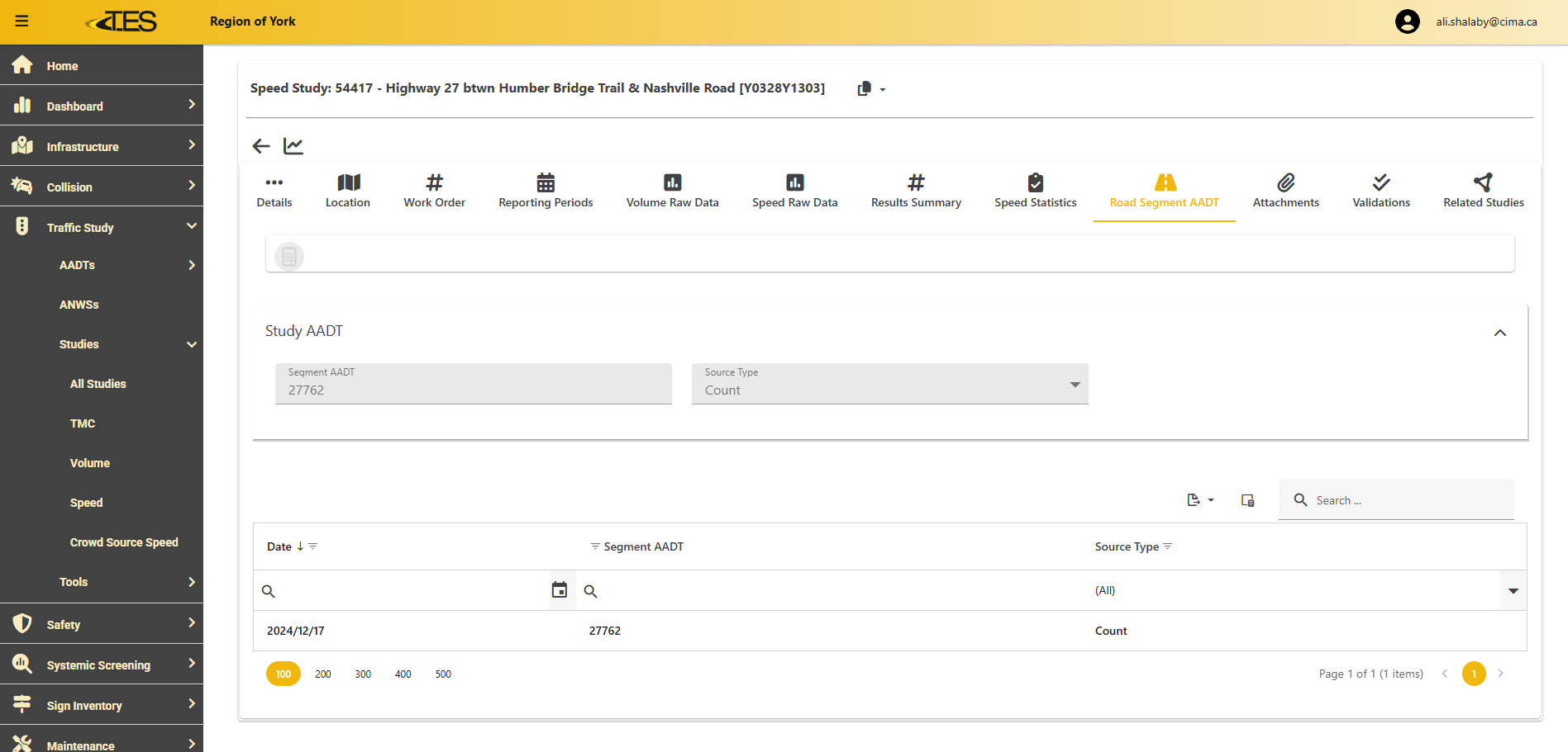 Segment AADT – The average daily traffic volume on the study's road segment.