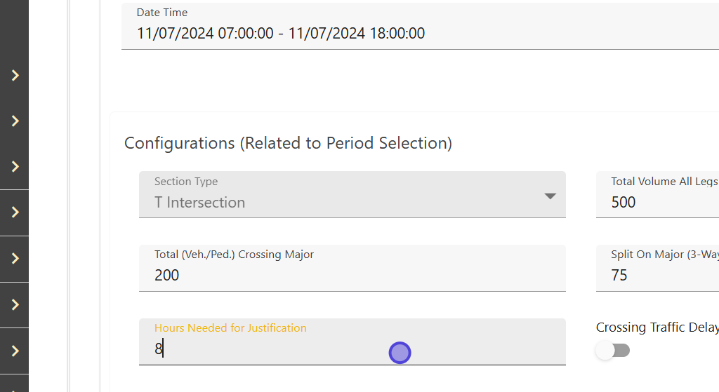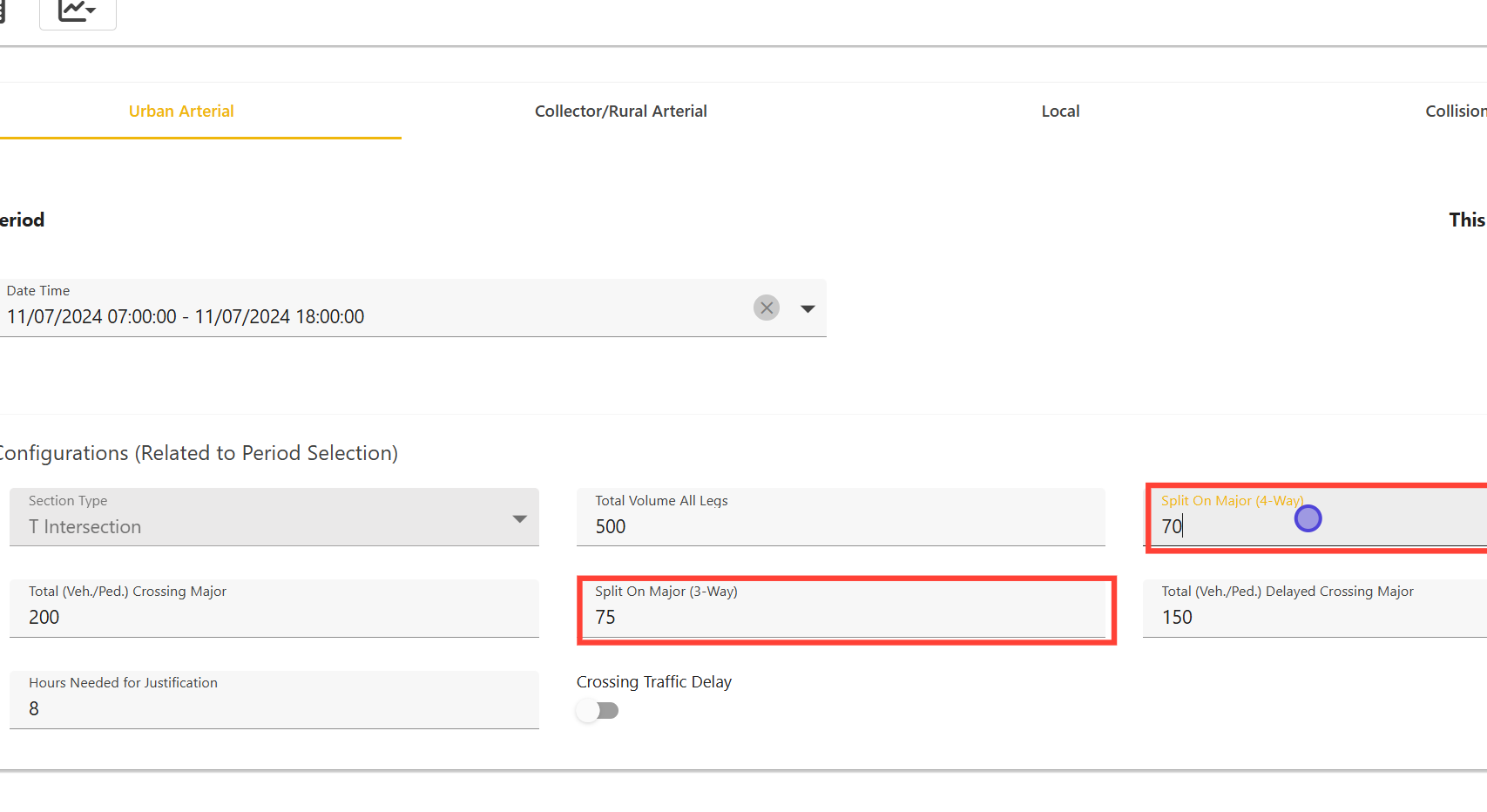 Navigate to the Collector/Rural Arterial tab to evaluate justifications specific to this section type.