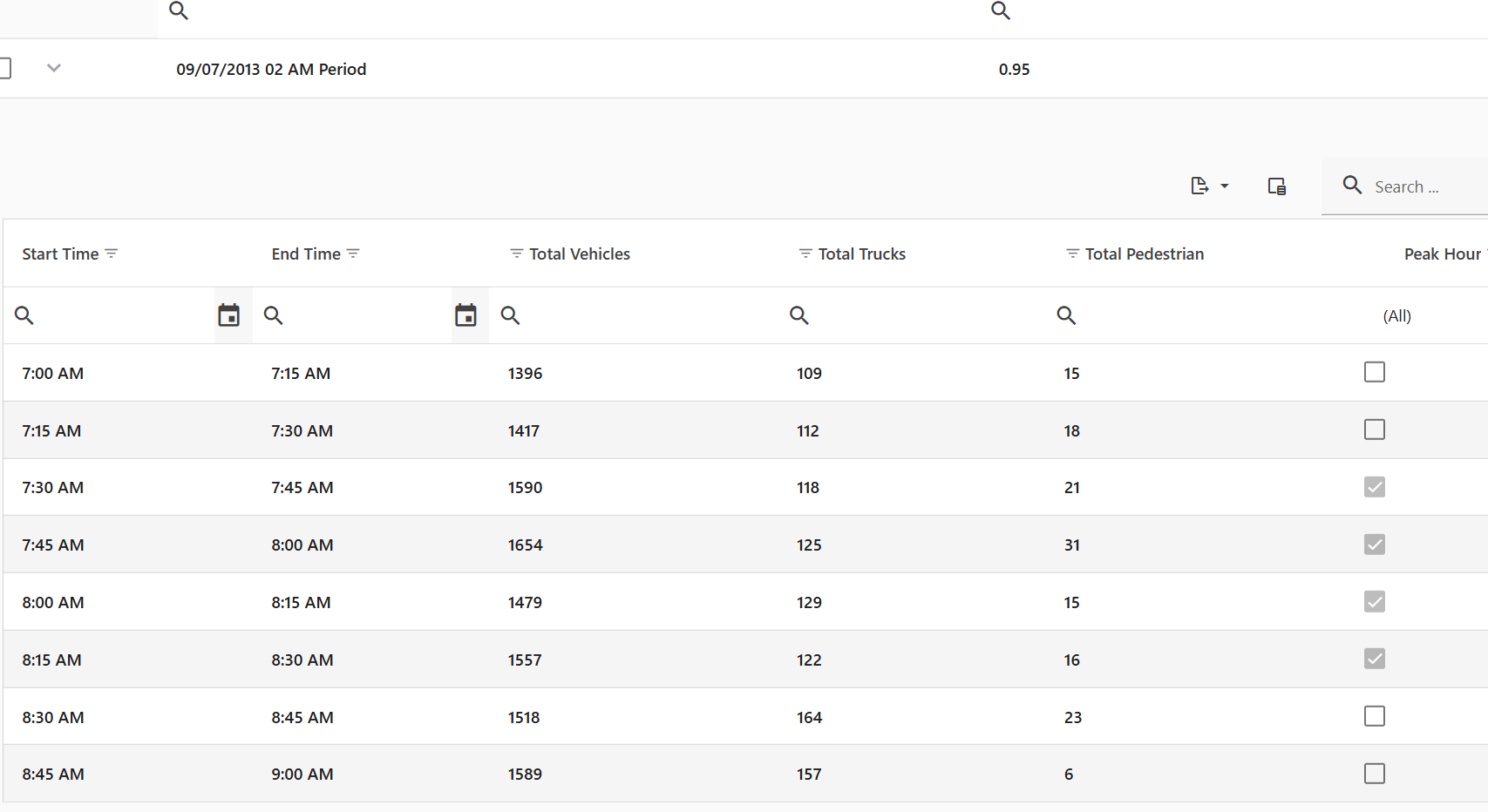 Displays the peak period of the selected time intervals instead of the peak hours.