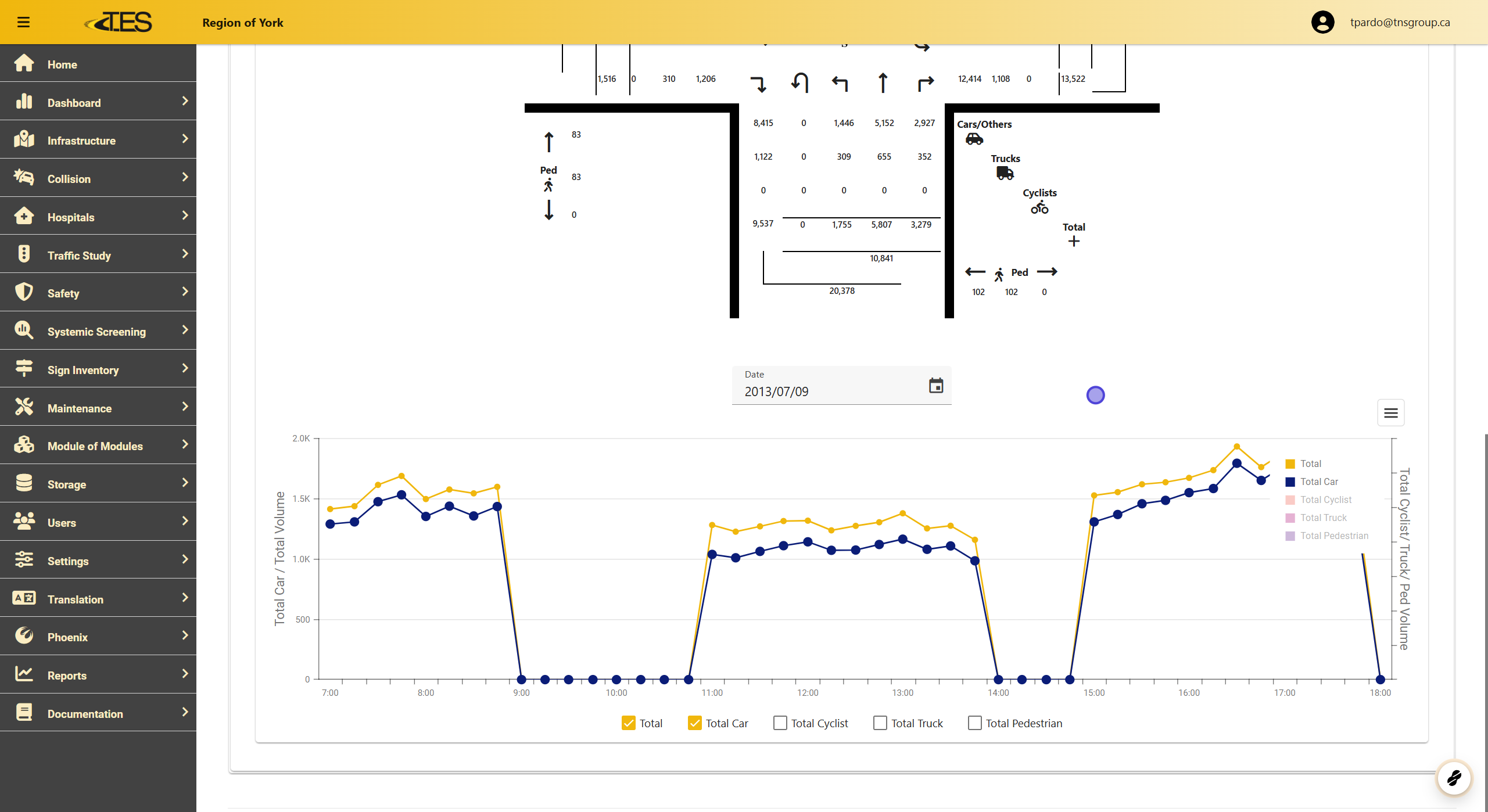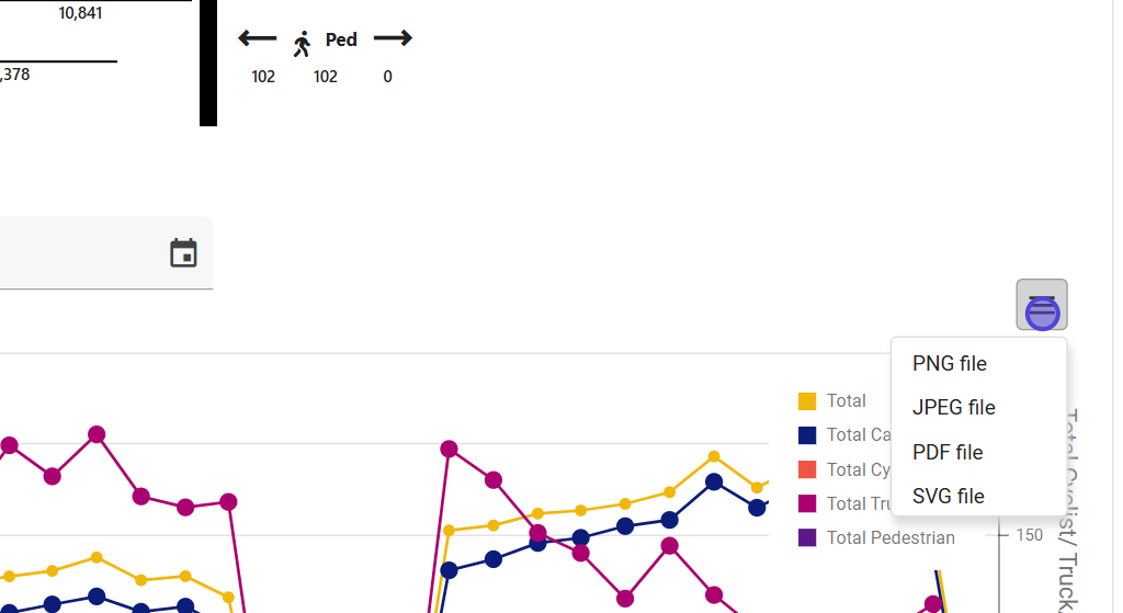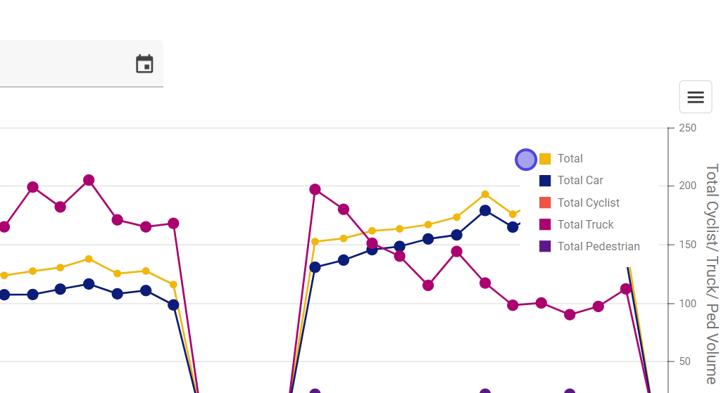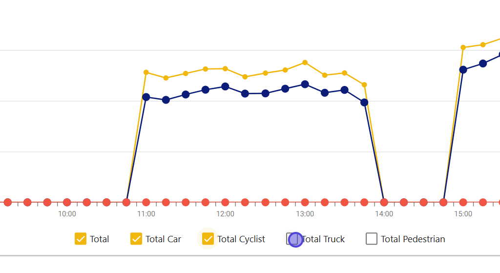 Use the toggle options to display or hide specific road user types (e.g., Total Car, Total Cyclist, Total Pedestrian).