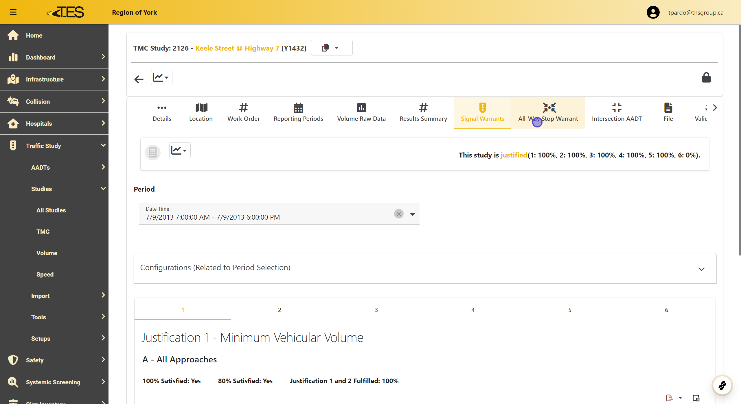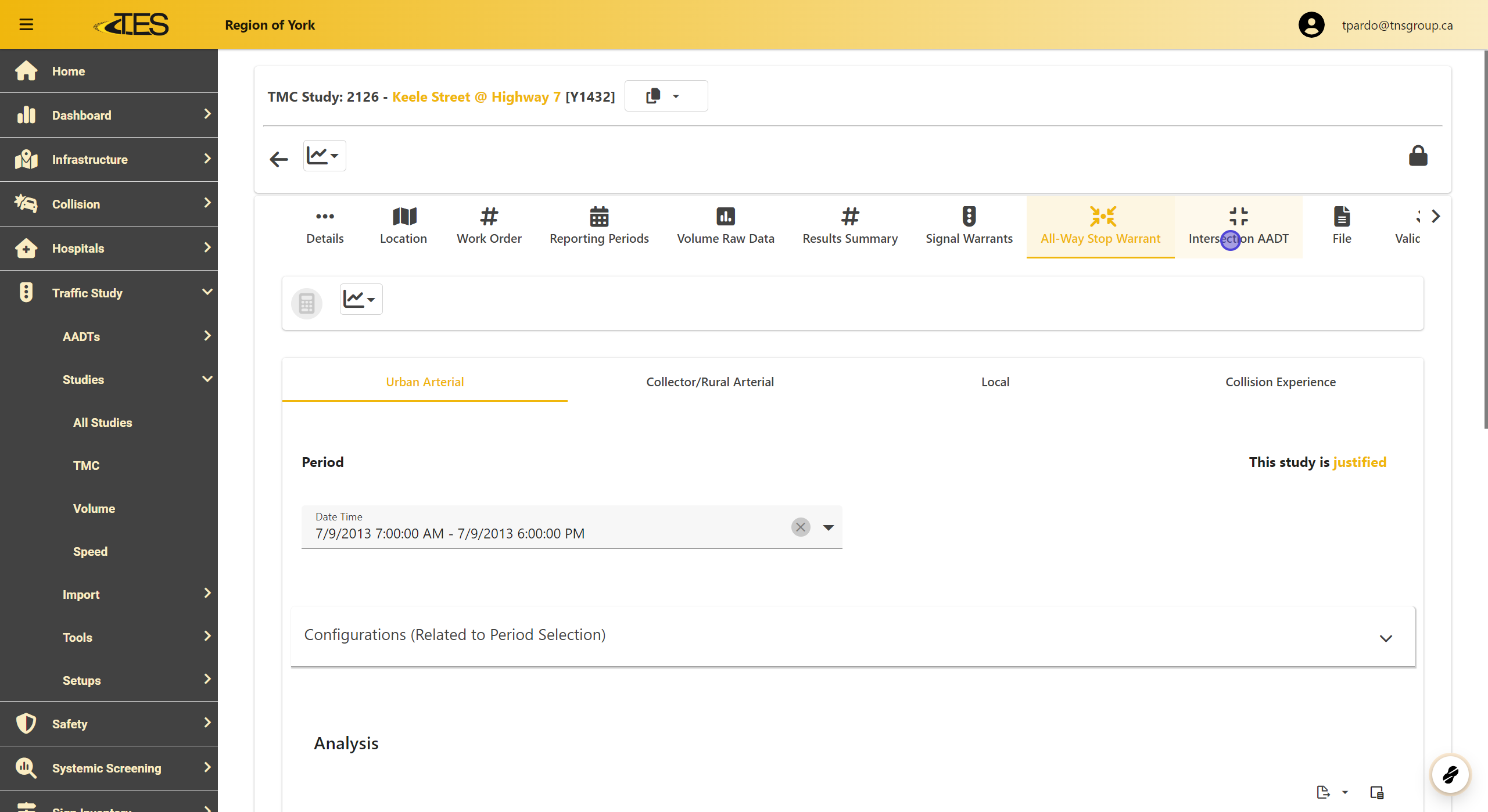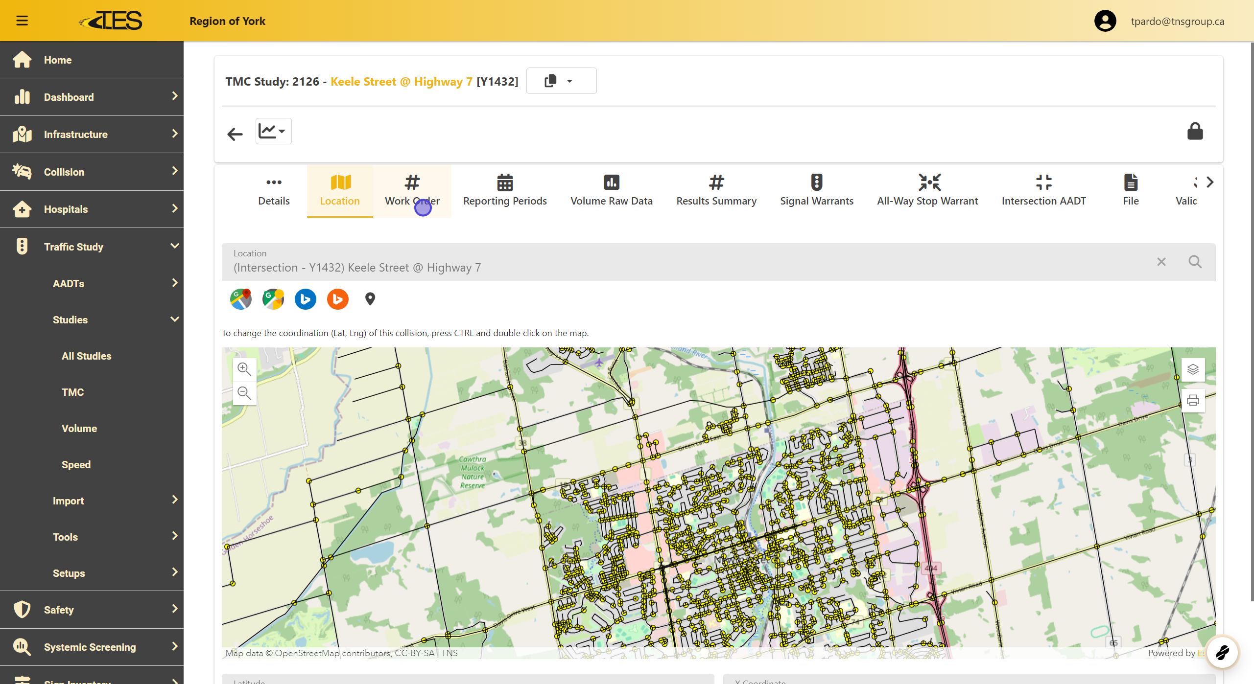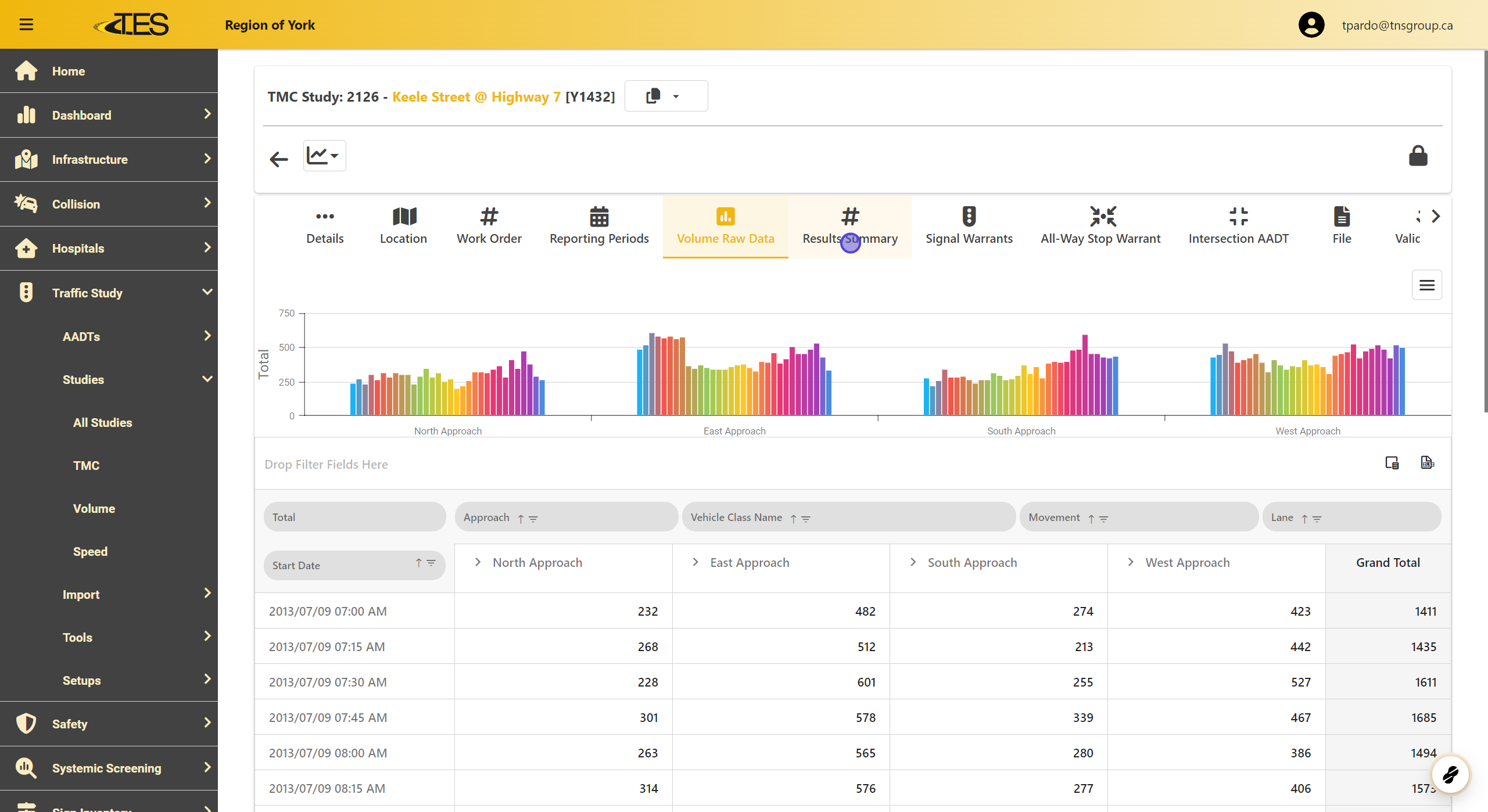 Navigate to the TMC Studies section from the TES dashboard. This module provides a comprehensive grid of all TMC studies (Traffic Movement Counts) in your jurisdiction. The grid includes columns such as: