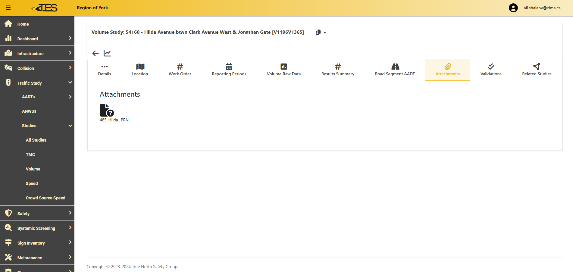The Attachments Tab displays any files attached to the study, including files used for importing data.