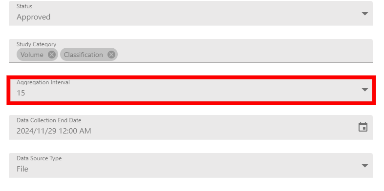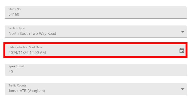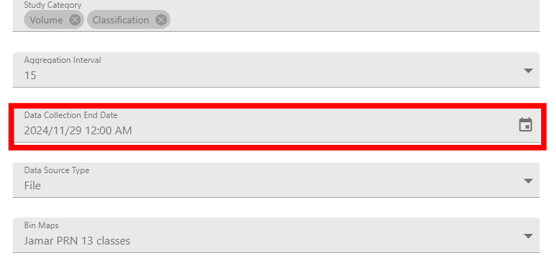 This field displays the start date and time for the data collection process, indicating when the study officially began.