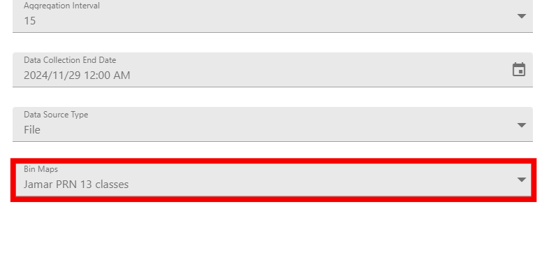 The Bin Maps field shows the specific bin map configuration used during the study.
