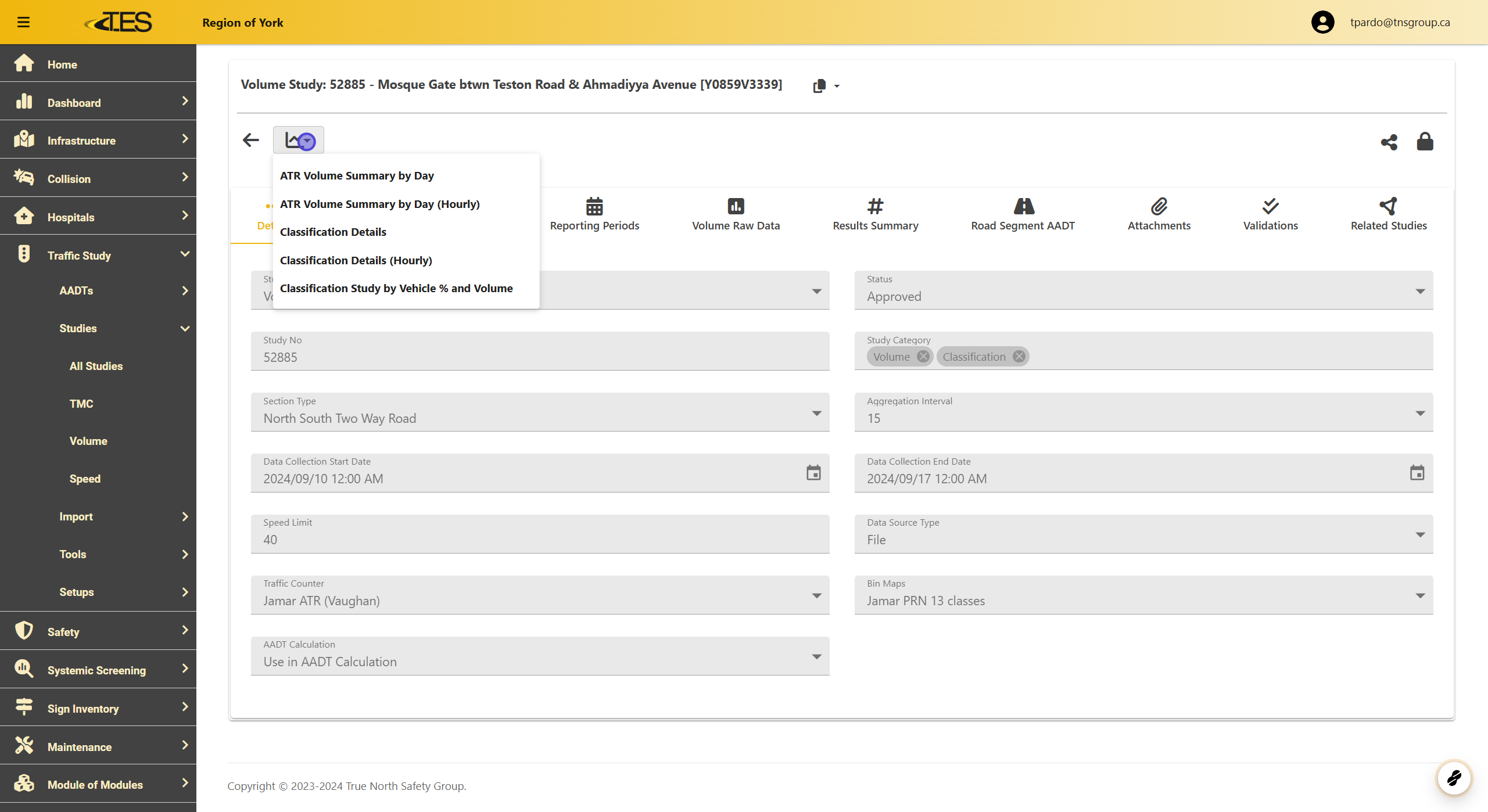 Classification Details Report : Provides detailed vehicle classifications in 15-minute intervals.