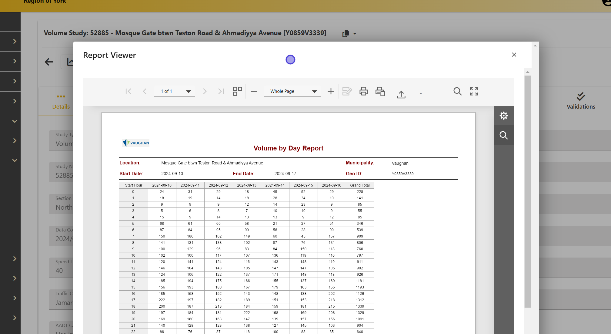 The ATR Volume Summary by Day report provides a breakdown of traffic volume for each day, organized by hour.