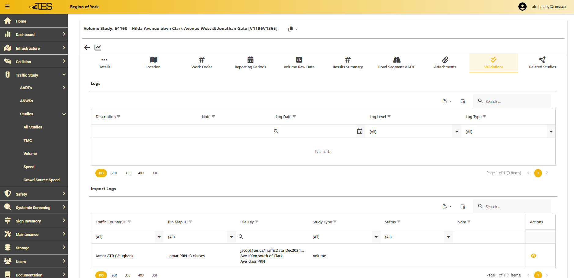 The Validations Tab helps you identify and address any issues that arise during the import process for a study. It consists of two sections: Logs and Import Logs .