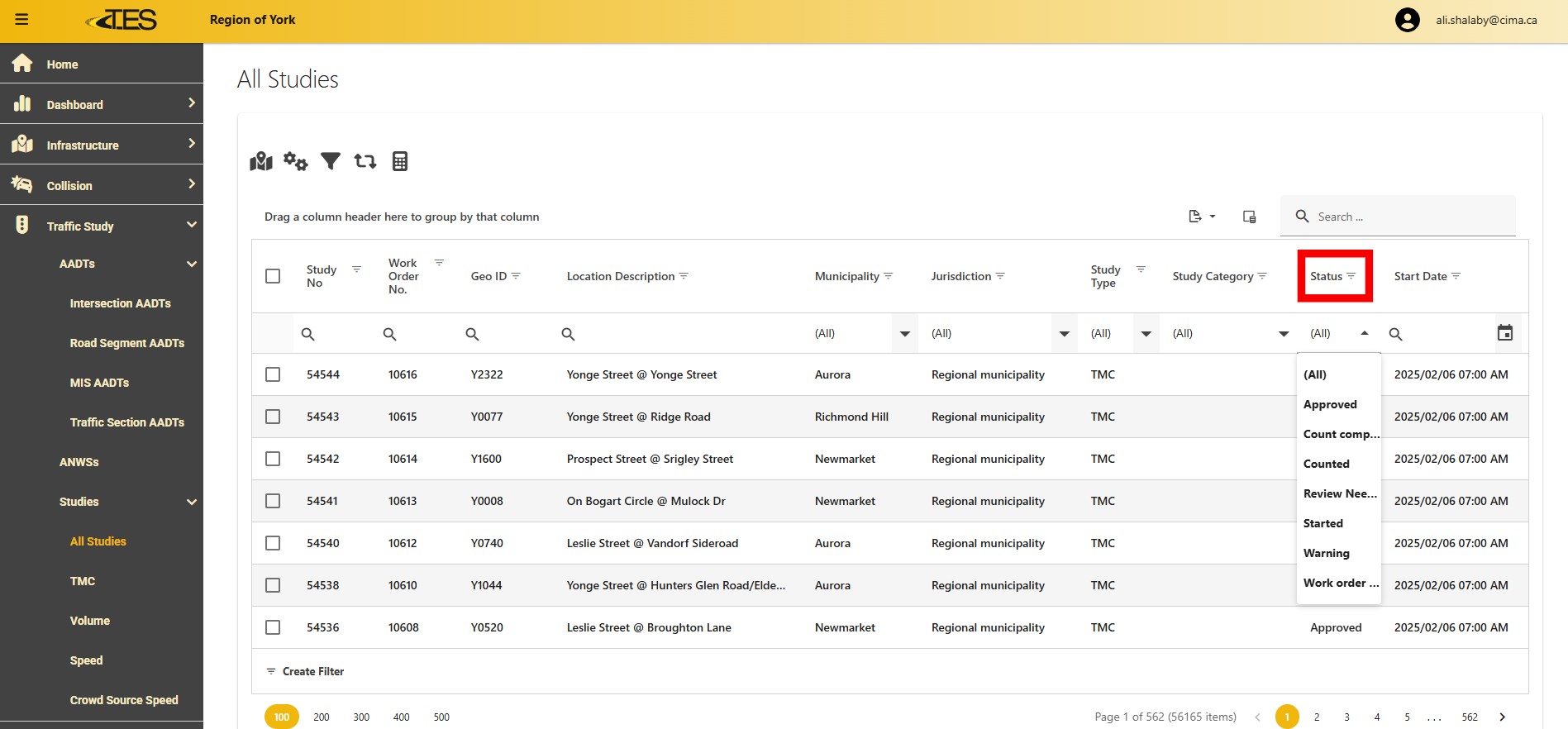 One of the fields for each study is Status. Users can view, filter and group by Status values and refer to these definitions: