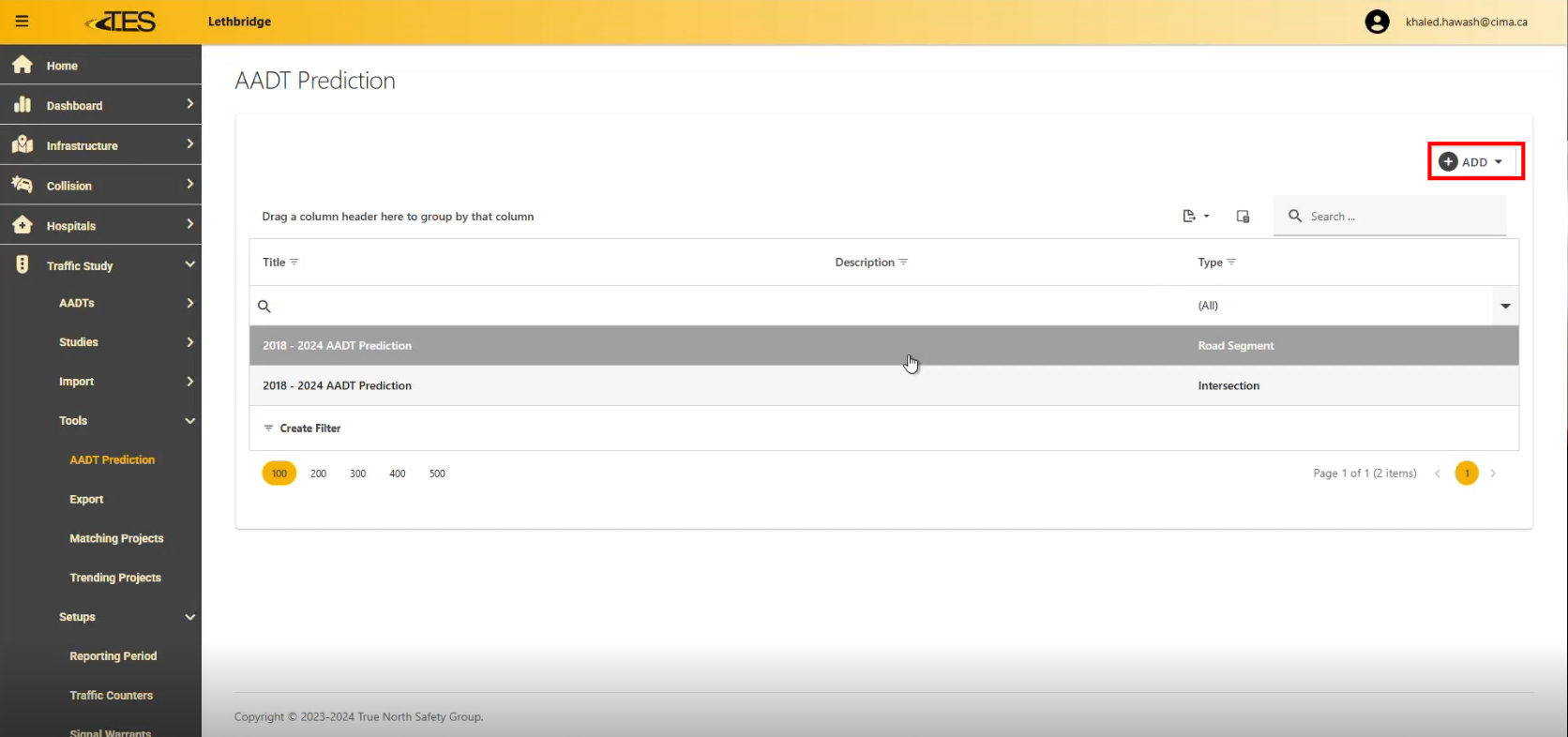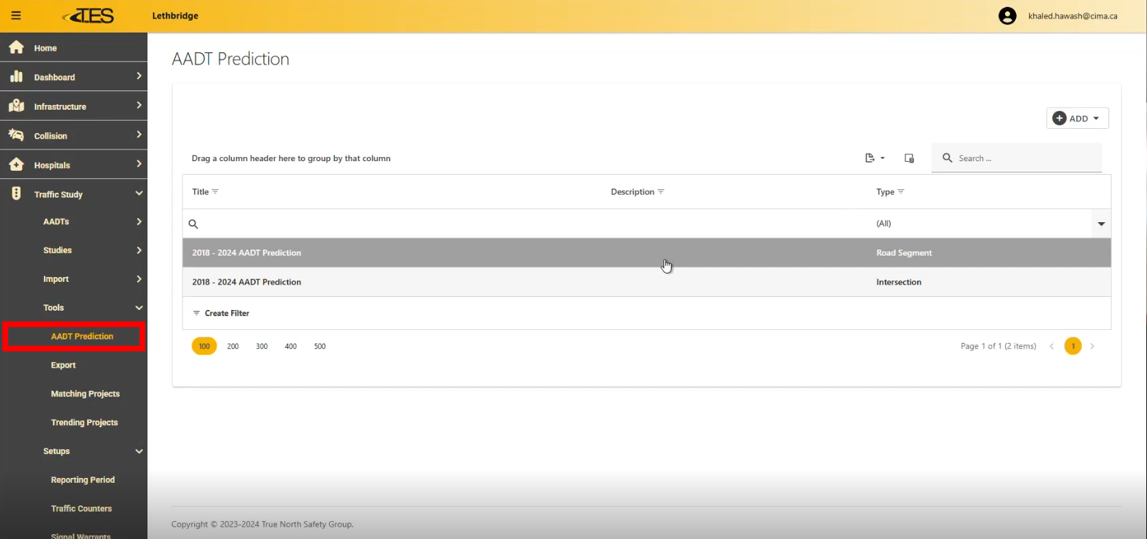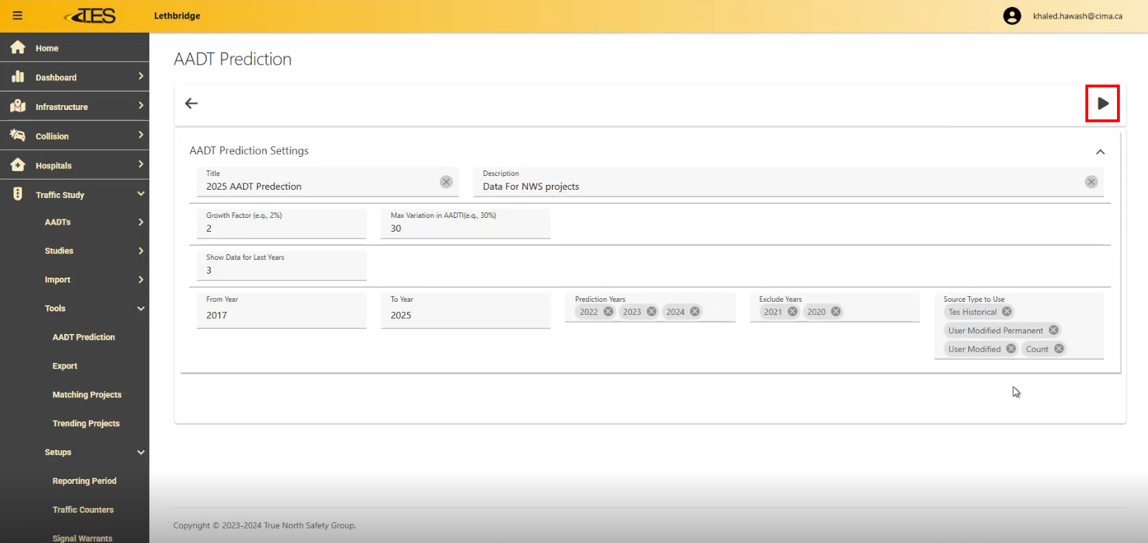 Note: Running AADT Prediction does not automatically update AADT values in TES Cloud