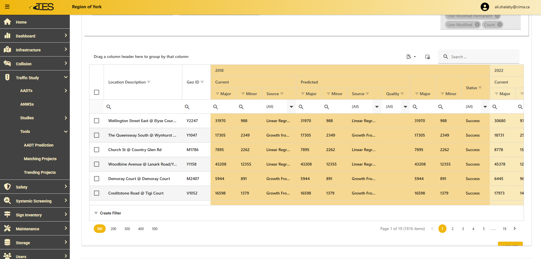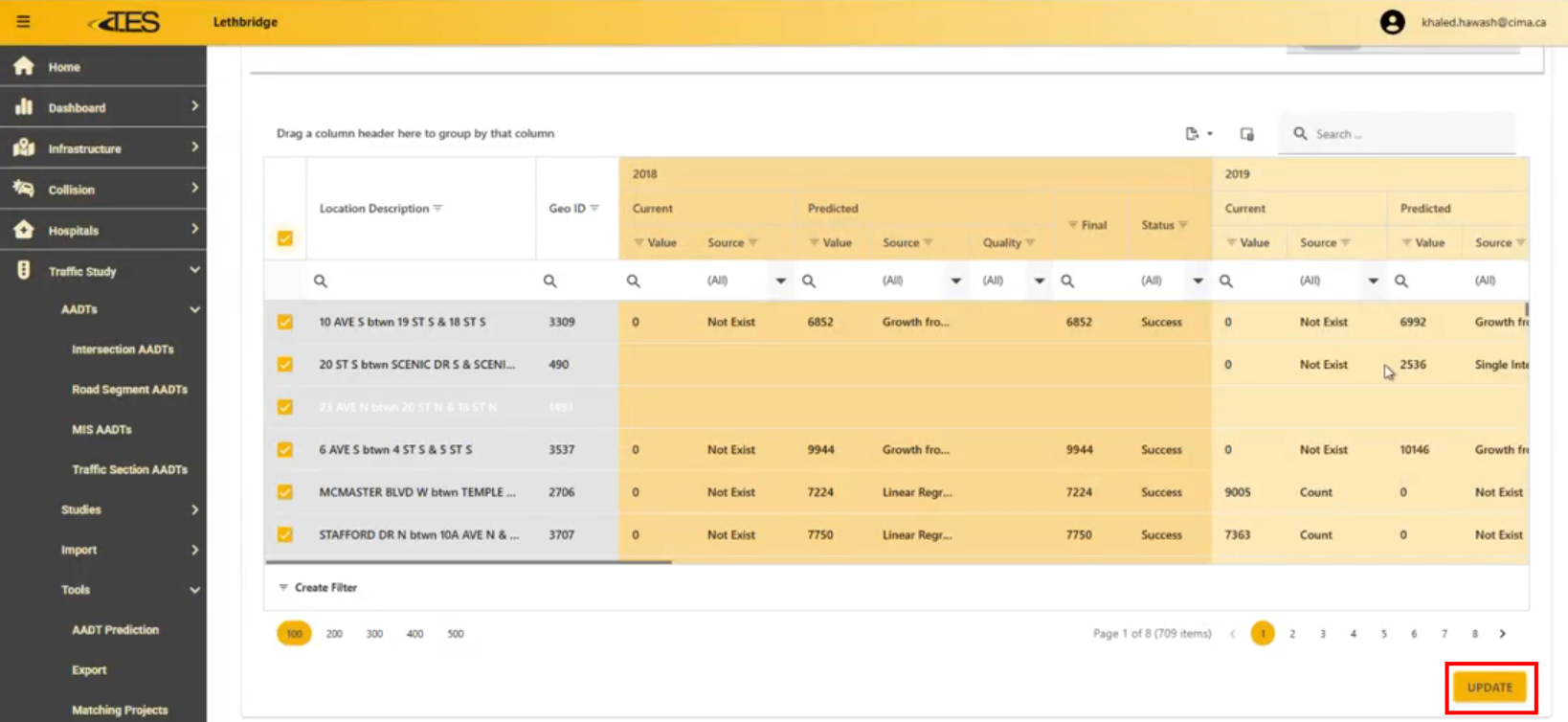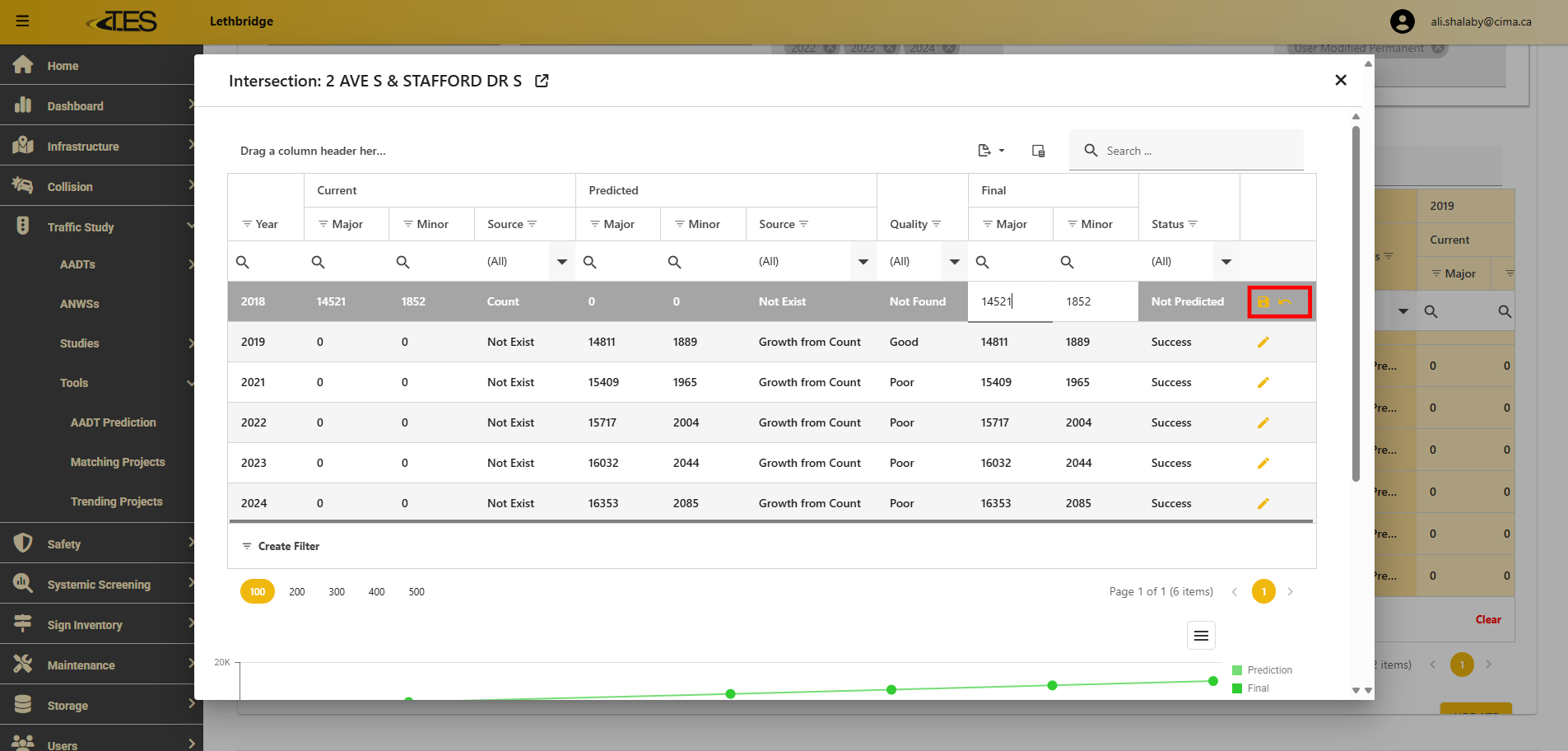 Note: Running AADT Prediction does not automatically update AADT values in TES Cloud